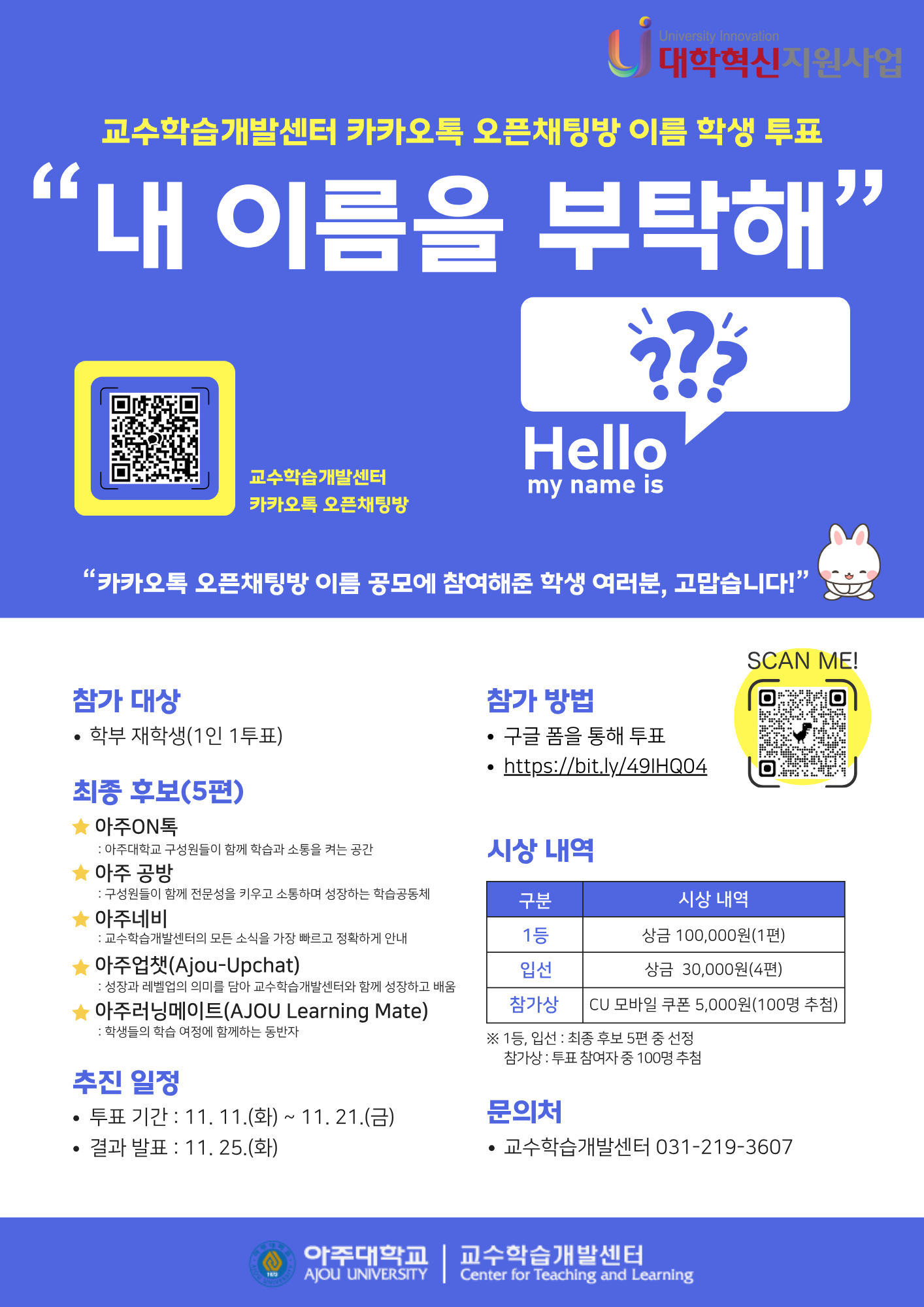 [비교과] [학습법] 교수학습개발센터 카카오톡 오픈채팅방 이름 학생 투표 "내 이름을 부탁해"