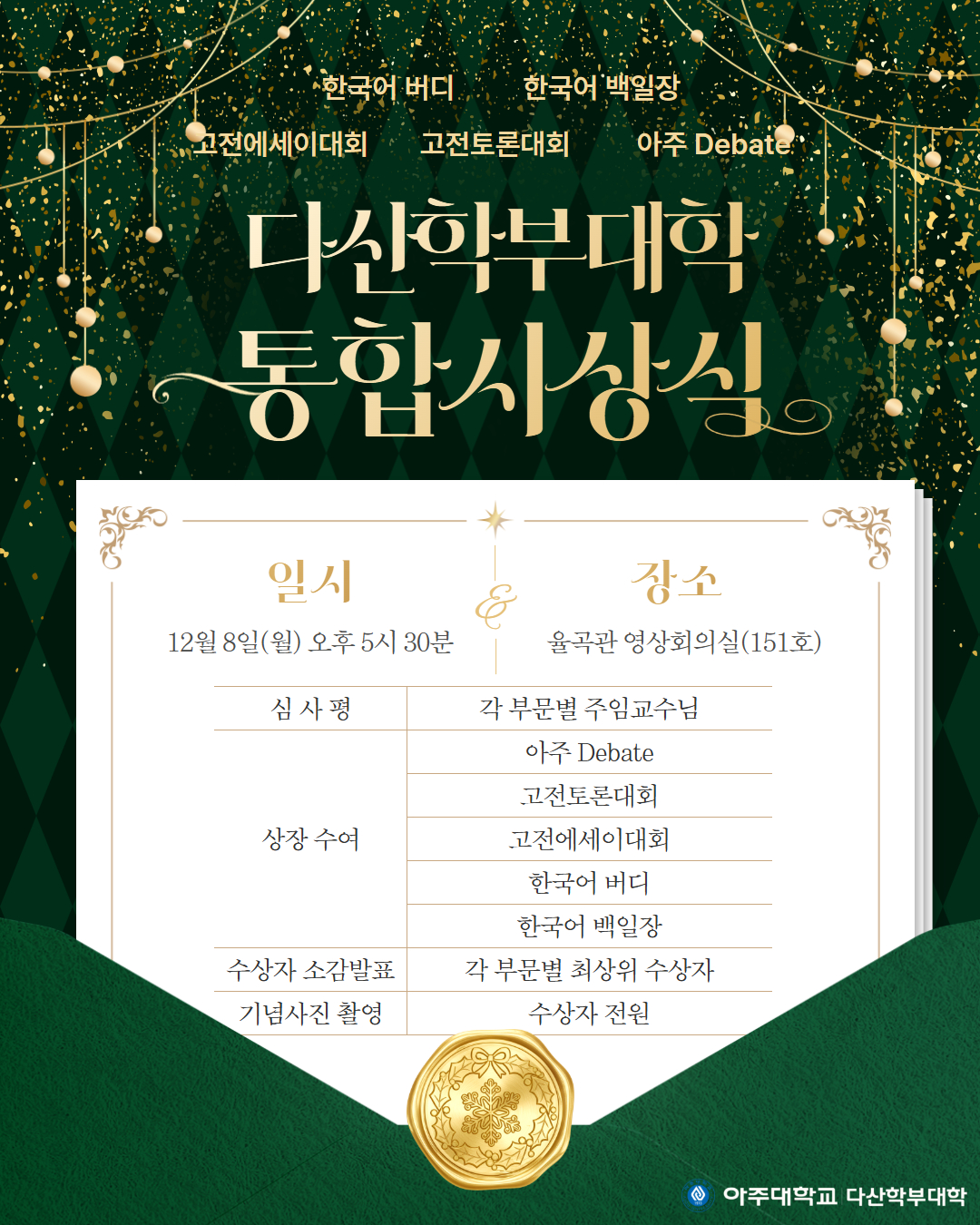[비교과] [다산학부대학] 2025학년도 다산학부대학 비교과 통합시상식 안내 (12/8 월요일 17시 30분 - 영상회의실)