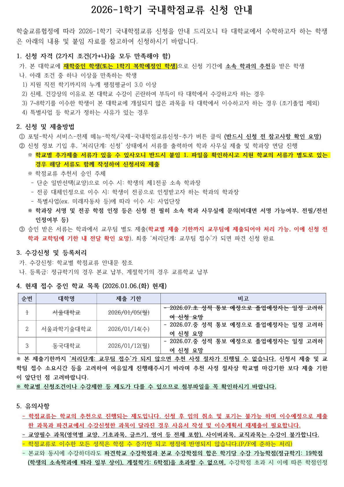 [학사] [학부/학사과정] (26.01.06.) (수정) 2026-1학기 국내대학 학점교류 신청 안내
