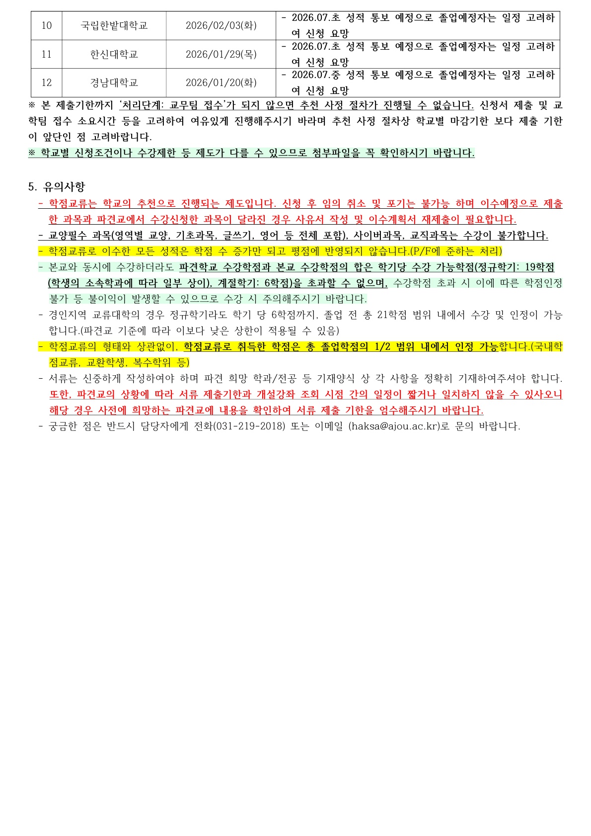 [학사] [학부/학사과정] (26.01.16.) 2026-1학기 국내대학 학점교류 신청 안내