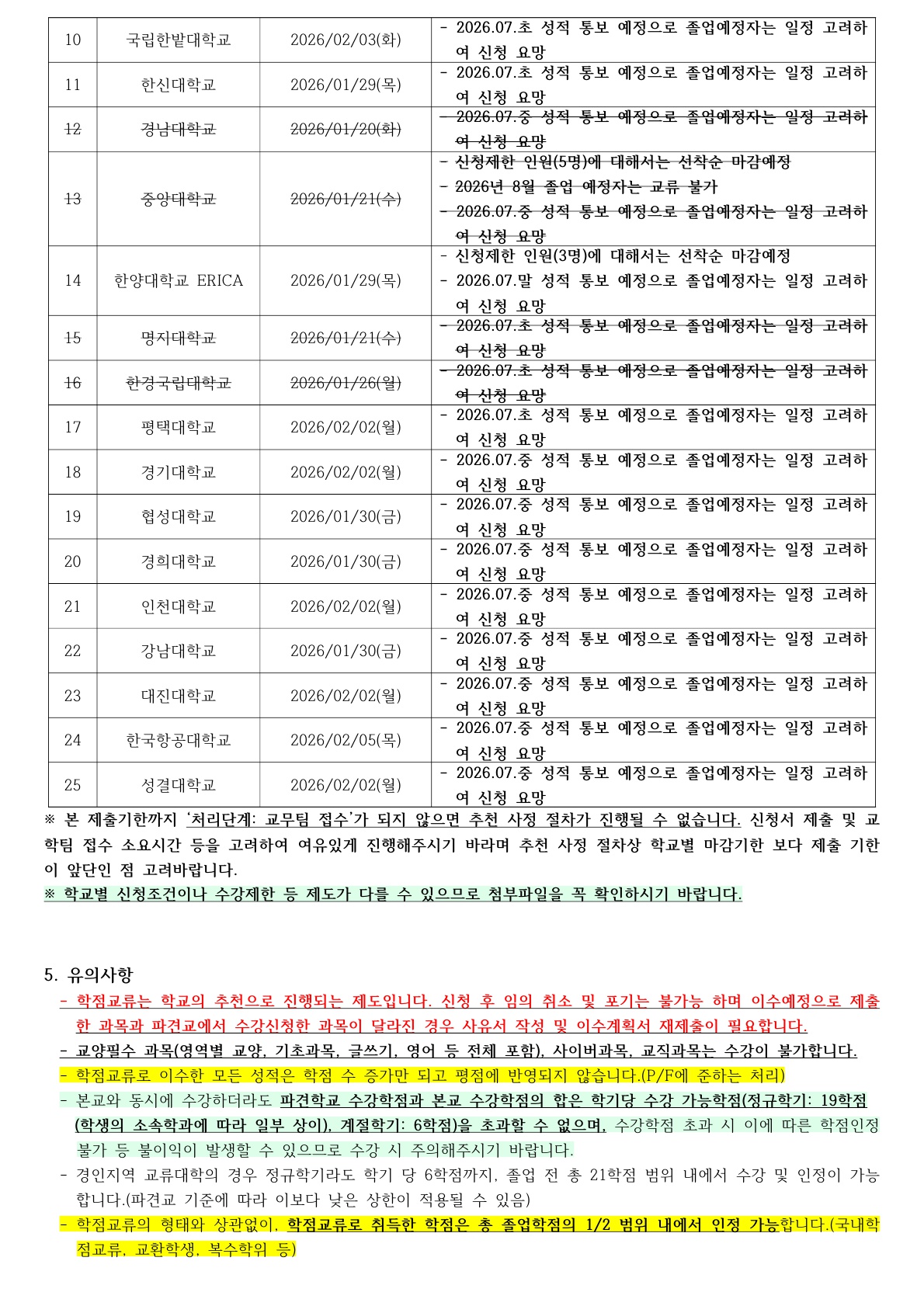 [학사] [학부/학사과정] (26.01.27.)(수정) 2026-1학기 국내대학 학점교류 신청 안내