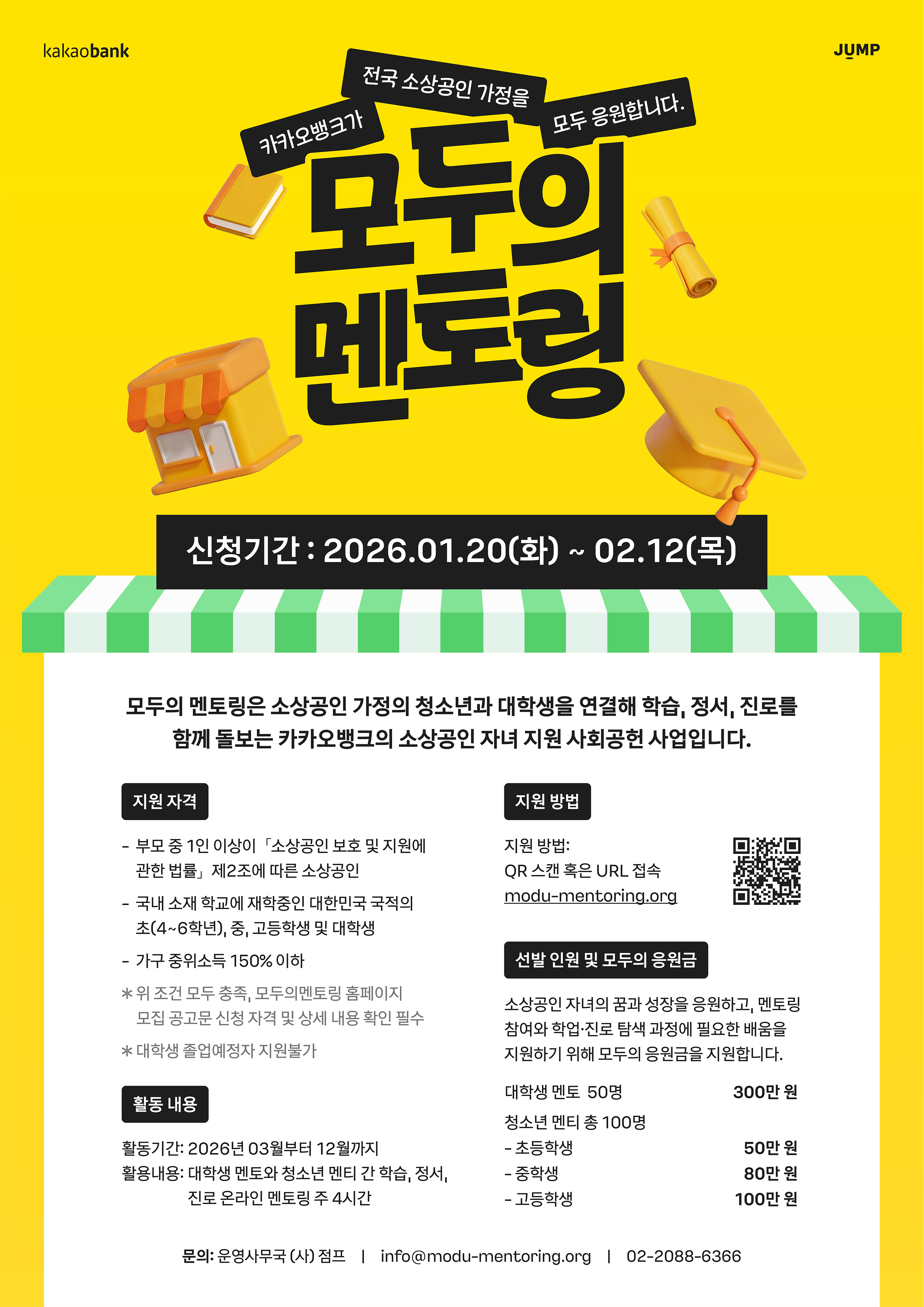[장학] [교외장학] 2026학년도 모두의 멘토링 대학생 멘토 모집