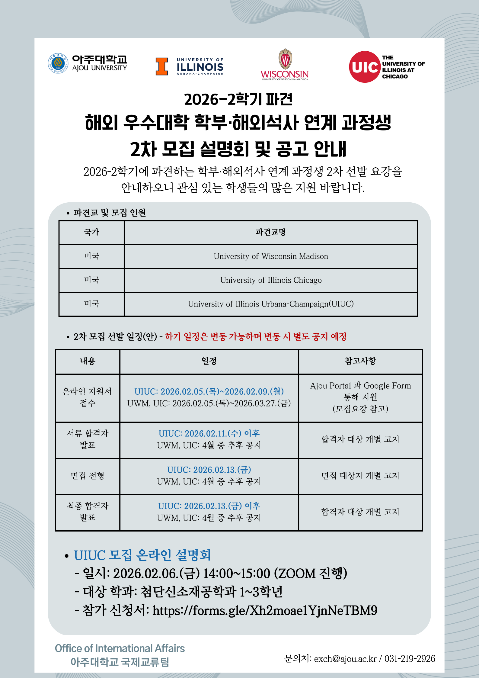 [학사] [국제교류팀] 2026-2학기 파견 학부·석사 연계과정 프로그램 설명회 및 2차 모집 안내