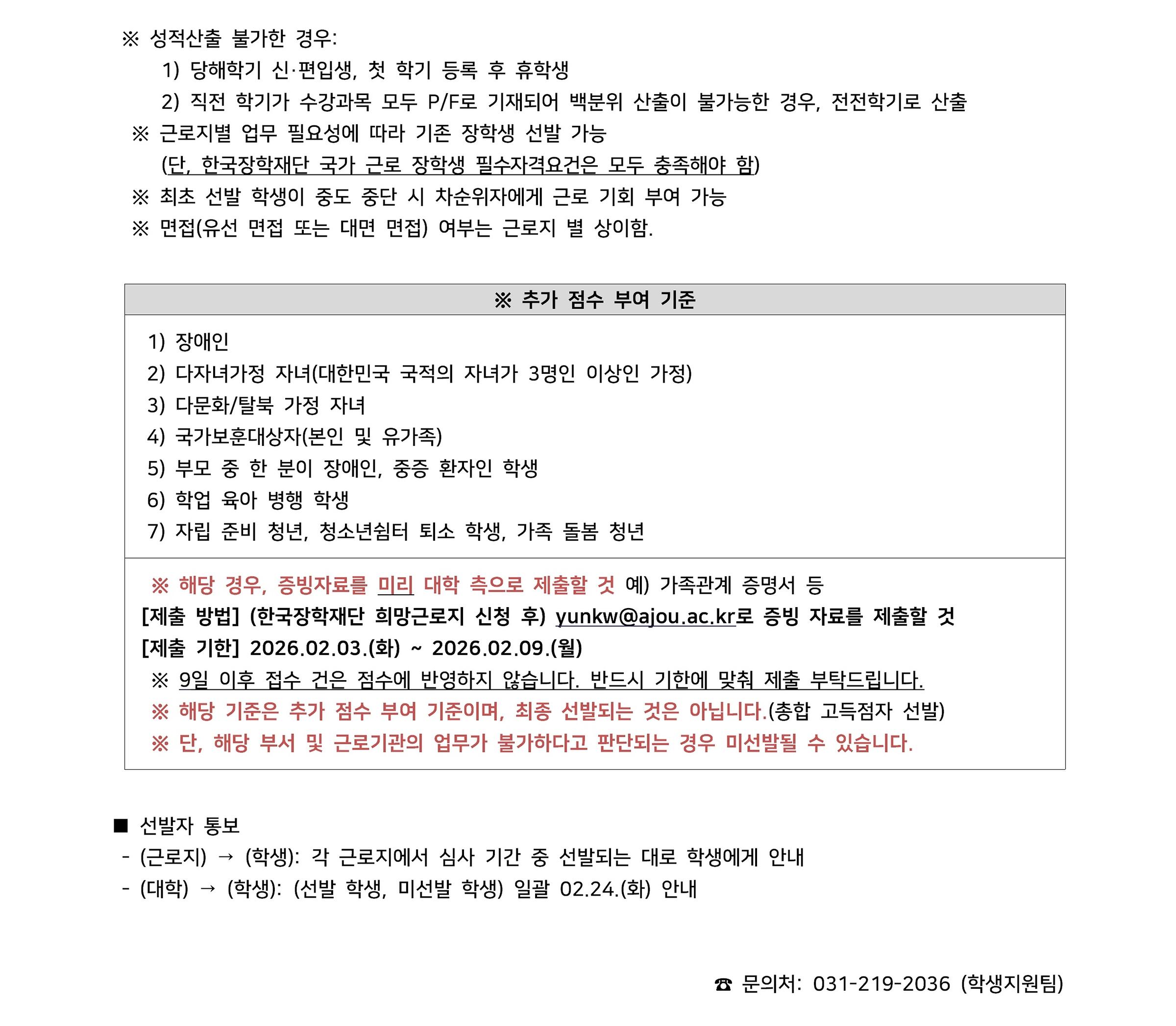 ※ 근로성 장학 및 학자금 대출 관련 안내는 [장학공지]를 통해 확인해 주시기 바랍니다.