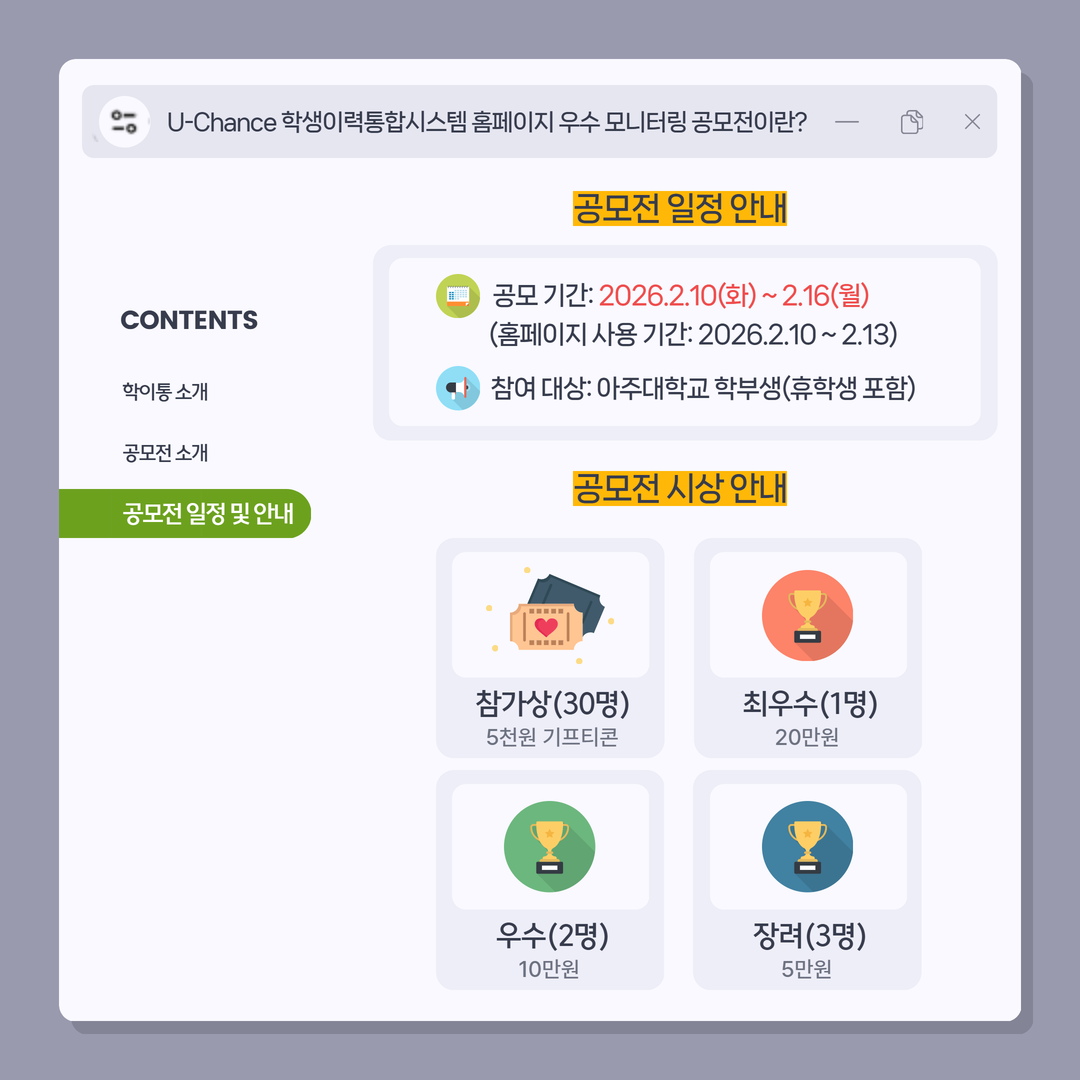 [๋น๊ต๊ณผ] [๐จ๊ณต๋ชจ์ ๐จ] U-Chance ํ์์ด๋ ฅํตํฉ์์คํ ํํ์ด์ง ์ฐ์ ๋ชจ๋ํฐ๋ง ๊ณต๋ชจ์ ์๋ด๐ฃ