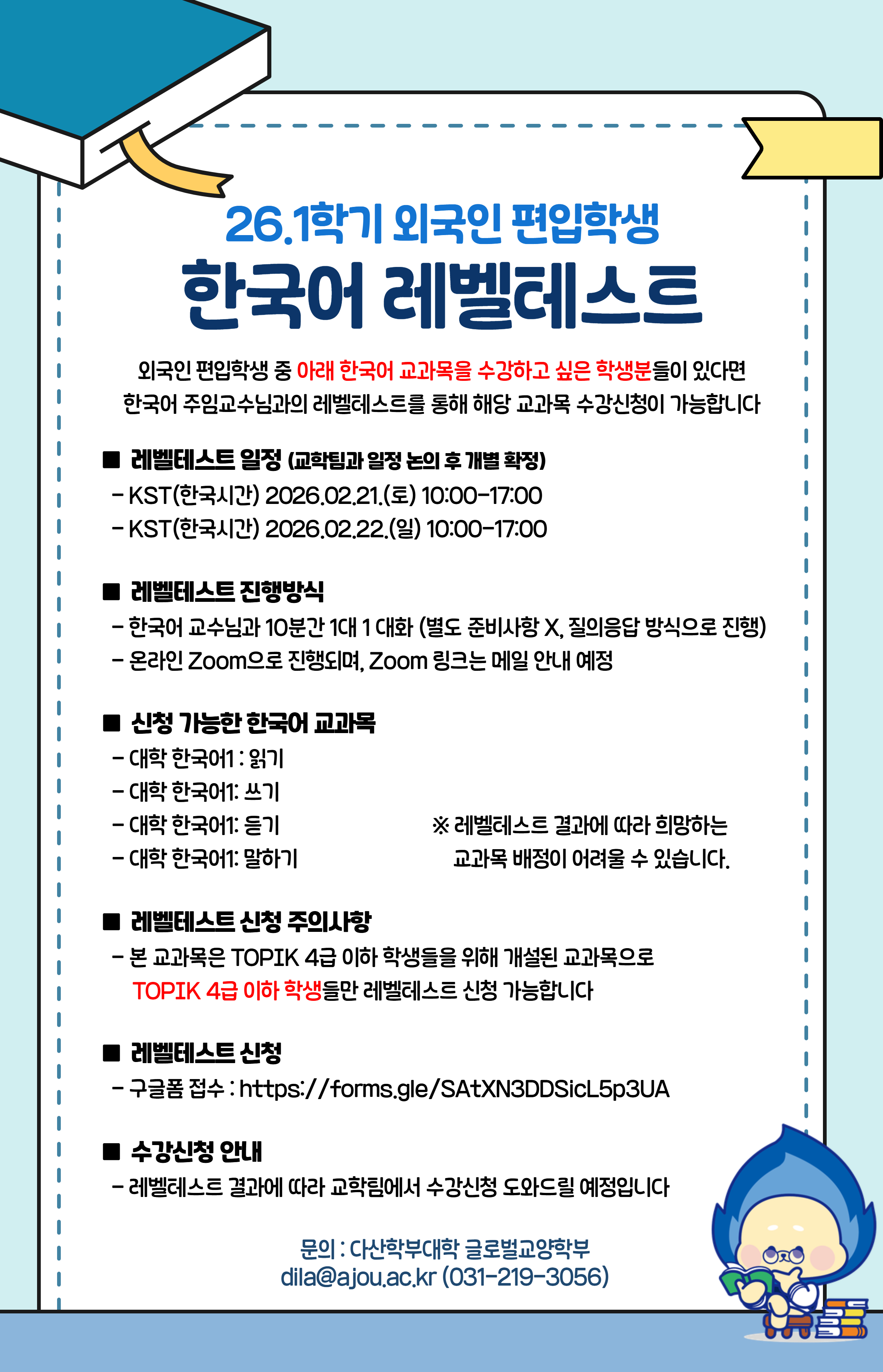 [학사] [글로벌교양학부] 26.1학기 외국인 편입학생 한국어 교과목 수강신청_레벨테스트