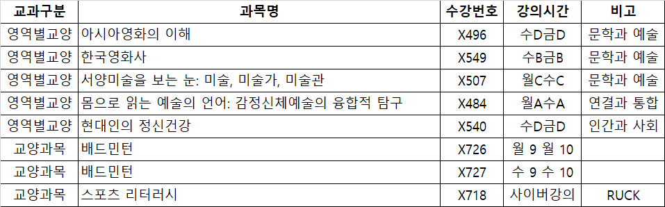 참고하여 수강신청 하기 바랍니다.