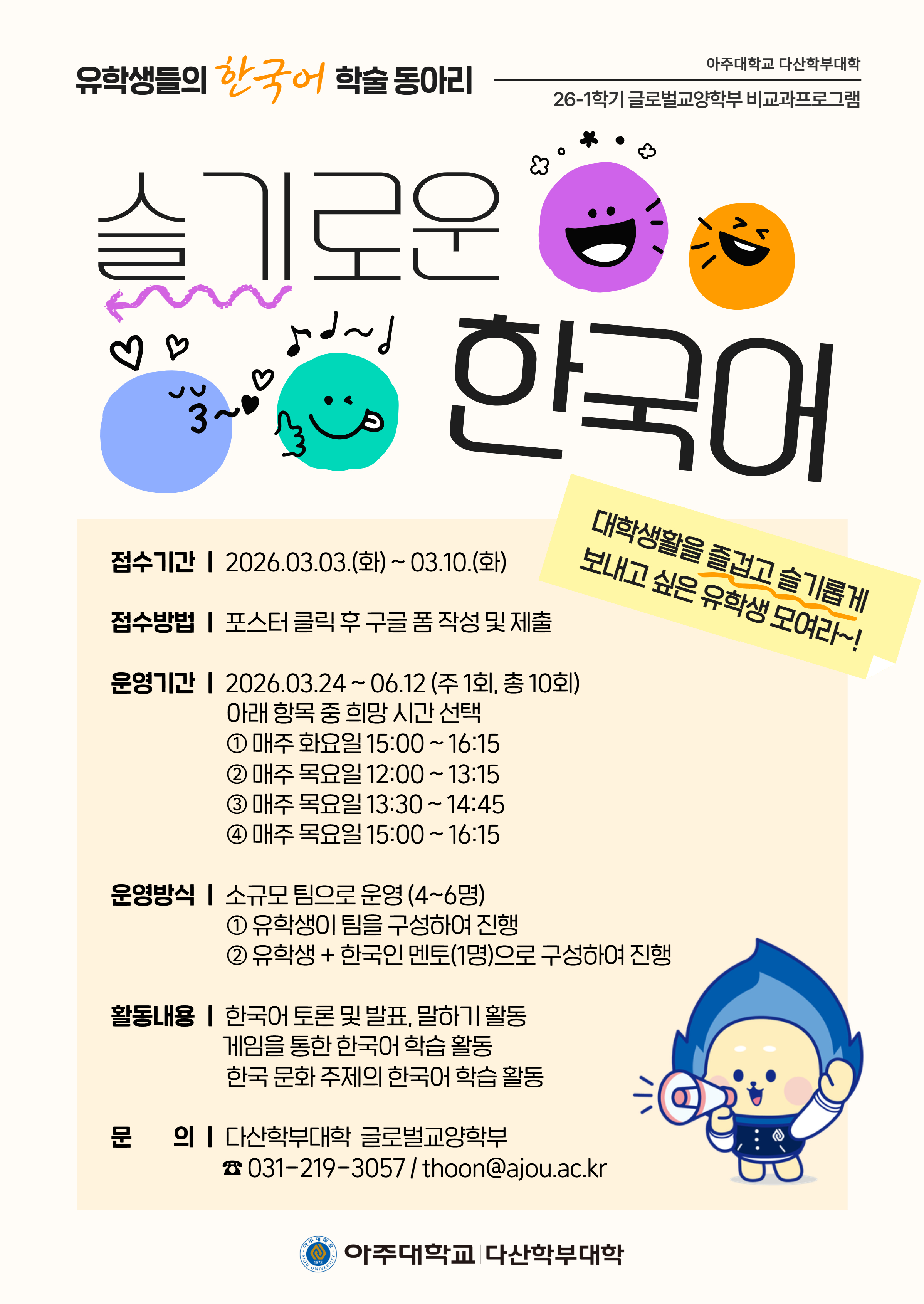 [비교과] [글로벌교양학부] 26-1 슬기로운 한국어 학술모임 참여자 모집(~3/10)