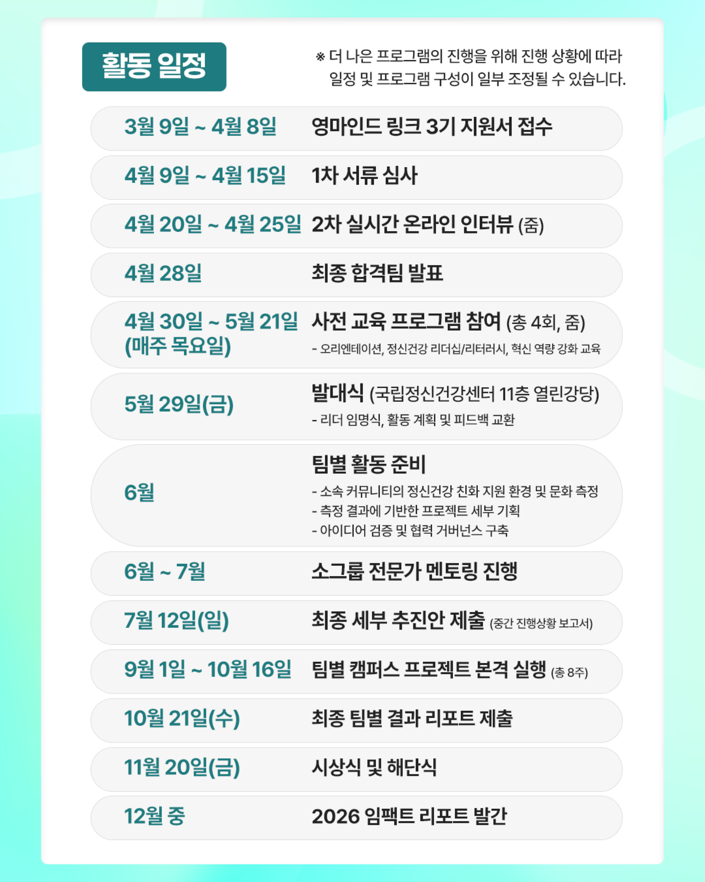 [비교과] [온마음 알리미] 2026년 정신건강 서포터즈 ‘영마인드 링크(Link)’ 3기 모집 공고