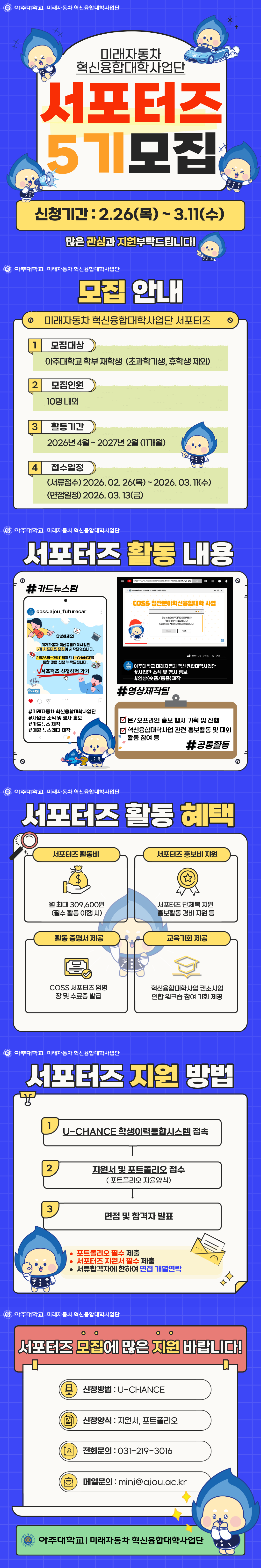 [비교과] ❤️서포터즈❤️ 미래자동차 혁신융합대학사업단 🫶5기 서포터즈🫶 모집(~3.11(수))
