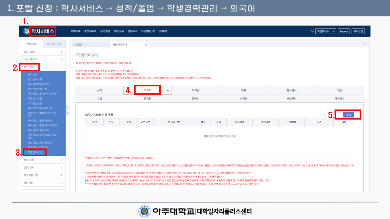 ▶️ 2. 성적표 제출(공인어학성적 온라인 제출) 바로가기