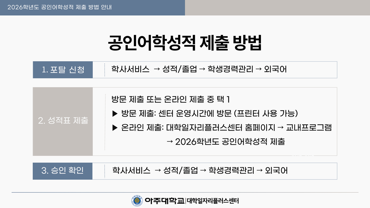 [취업] [일자리+센터] 2026학년도 공인어학성적 제출 방법 안내