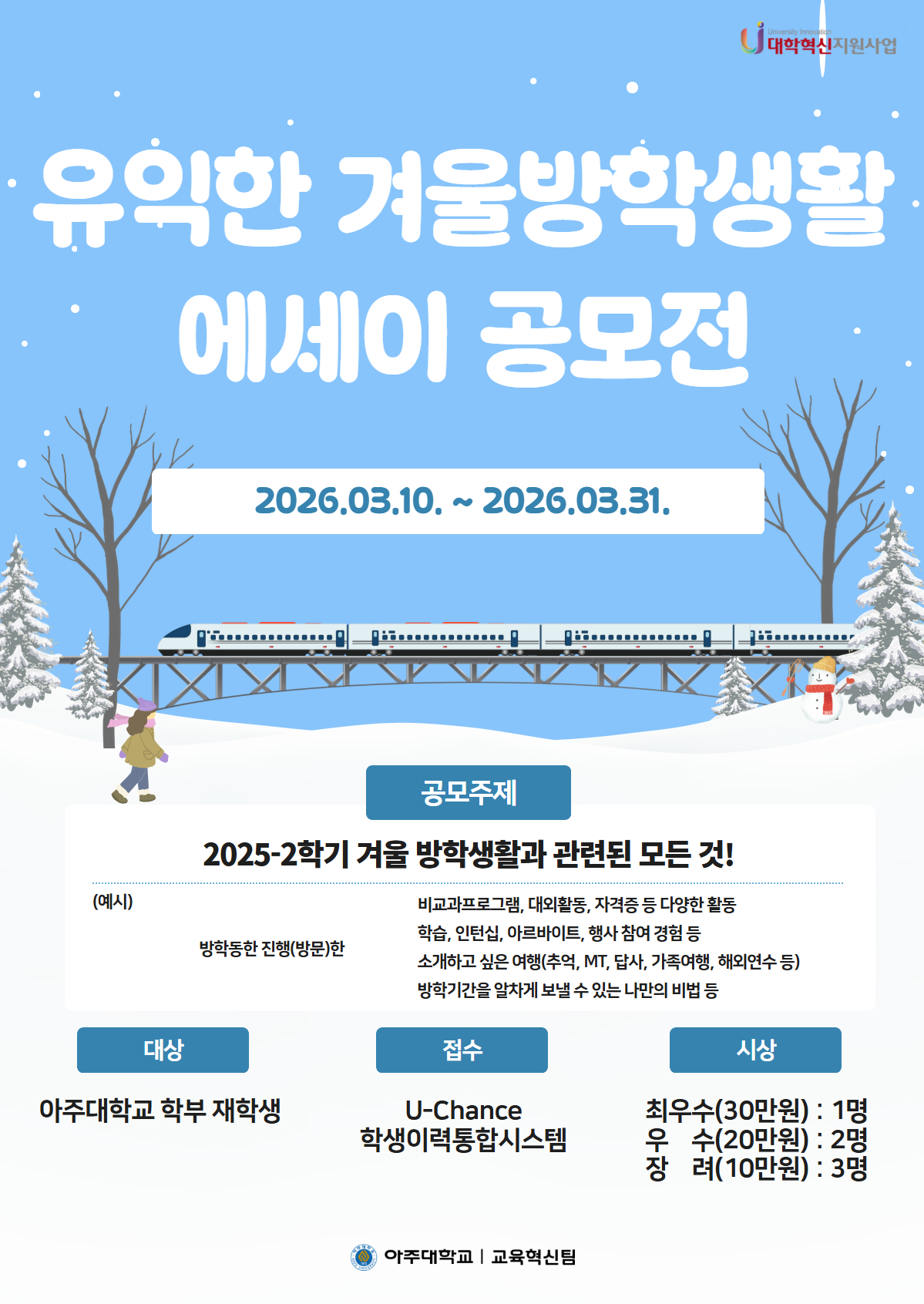 ๊ณต๋ชจ์ฃผ์ œ : 2025ํ•™๋…„๋„ 2ํ•™๊ธฐ ๊ฒจ์šธ๋ฐฉํ•™๊ณผ ๊ด€๋ จ๋œ ๋ชจ๋“  ๊ฒƒ
