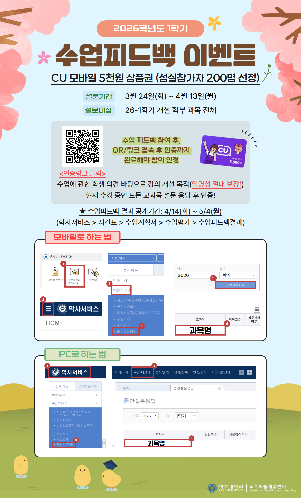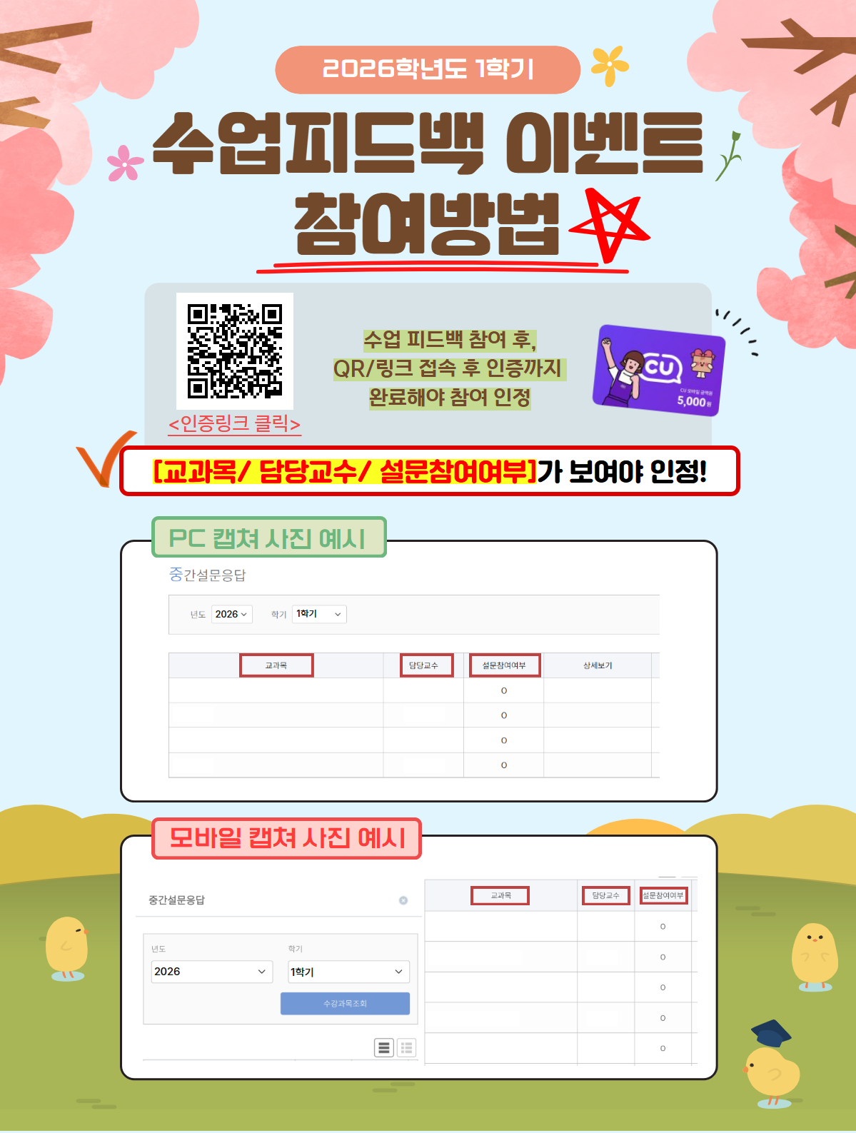 26-1학기 수업에 대한 여러분의 의견, 교수님께 안전하게 전달해 드려요!
