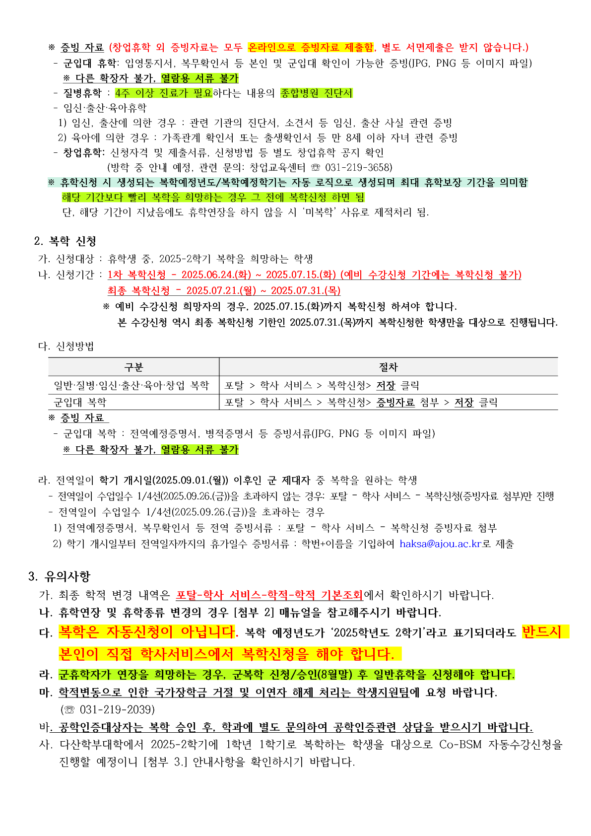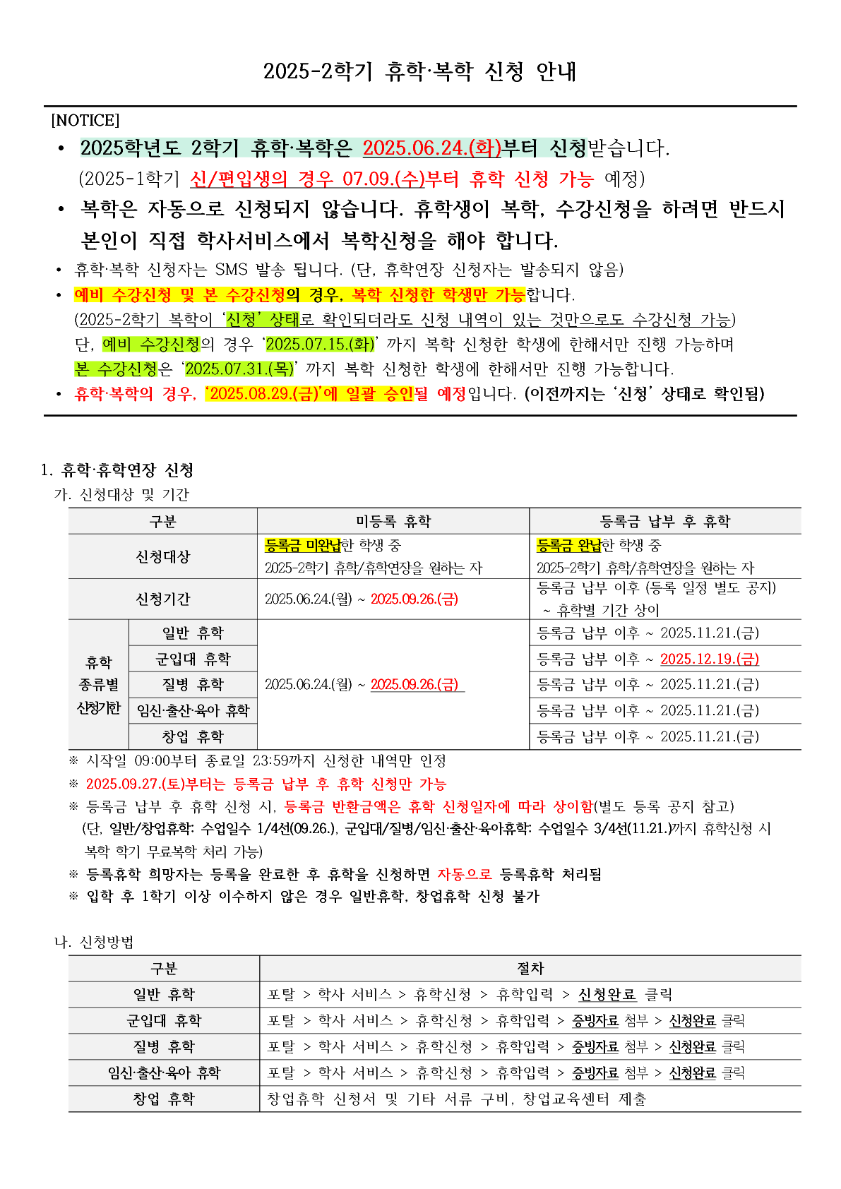 [학사] [학사] 2025-2학기 휴학/복학 신청 안내