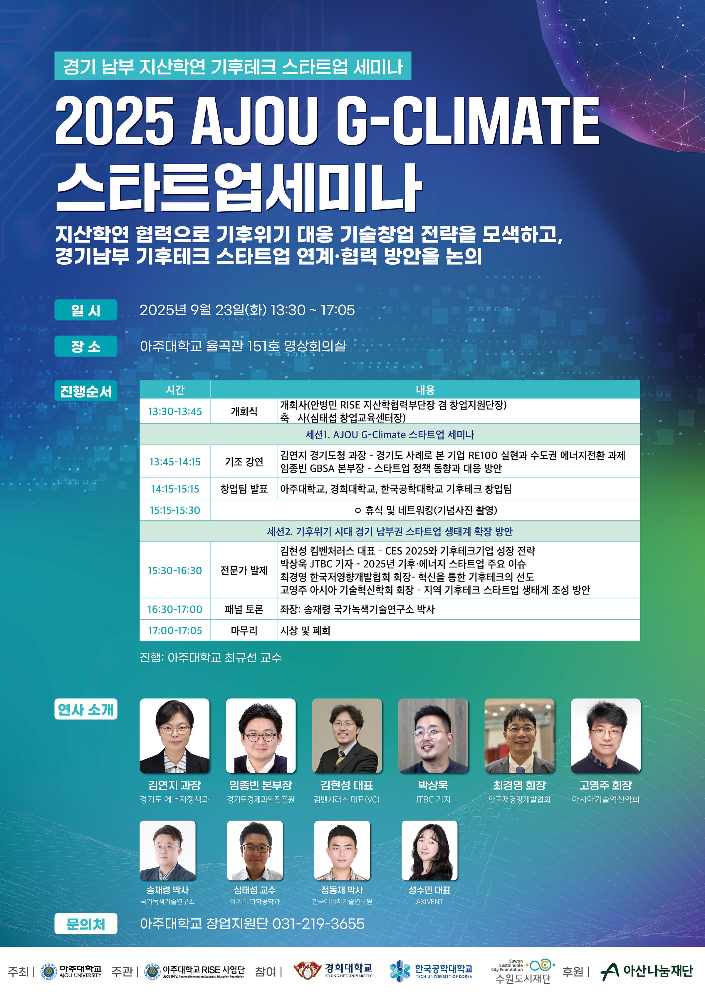[기타] [창업지원팀] 2025 AJOU G-Climate 스타트업 세미나 안내(9/23(화))