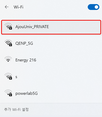 4. Wi-Fi SSID 목록 중 “AjouUniv_PRIVATE” 클릭