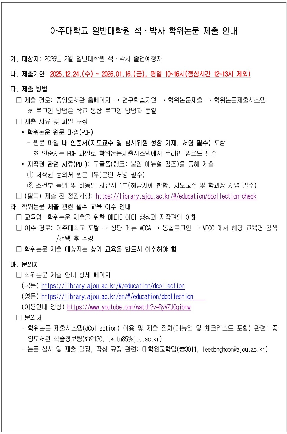 2025학년도 전기(2026년 2월 졸업예정) 학위논문 제출 안내
