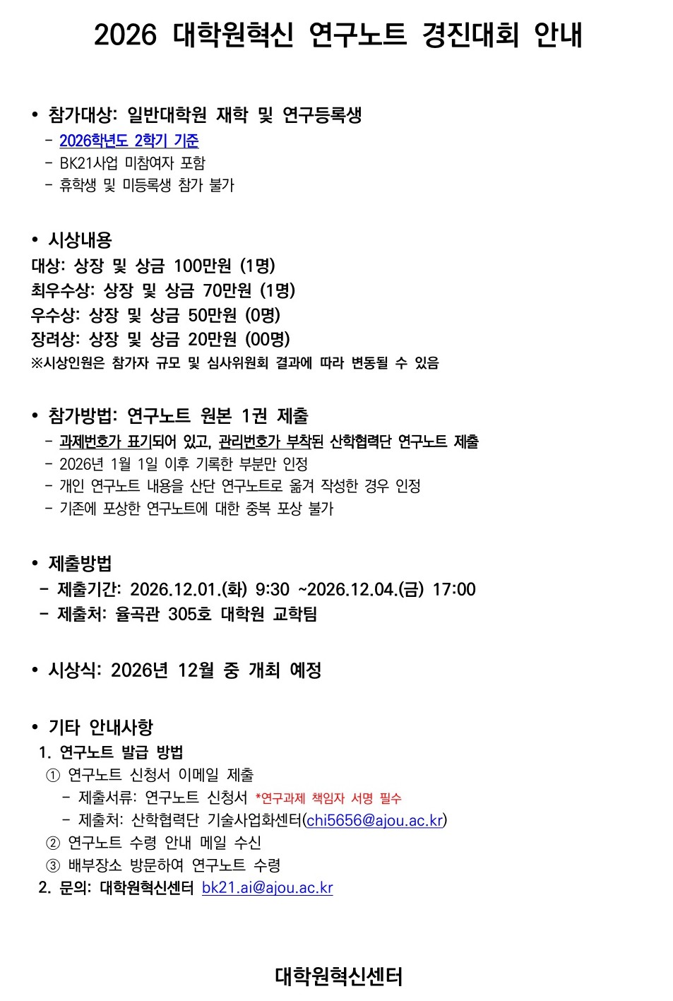 2026 대학원혁신 연구노트 경진대회 개최 안내