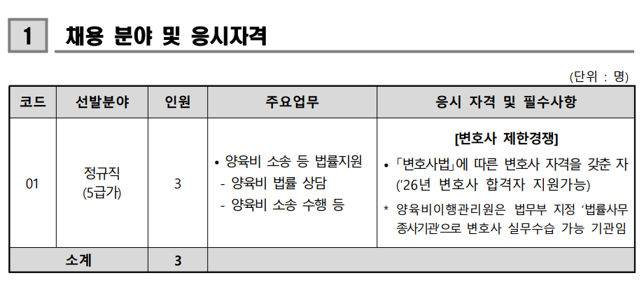 [양육비이행관리원] 2026년 제2차 직원 채용 공고