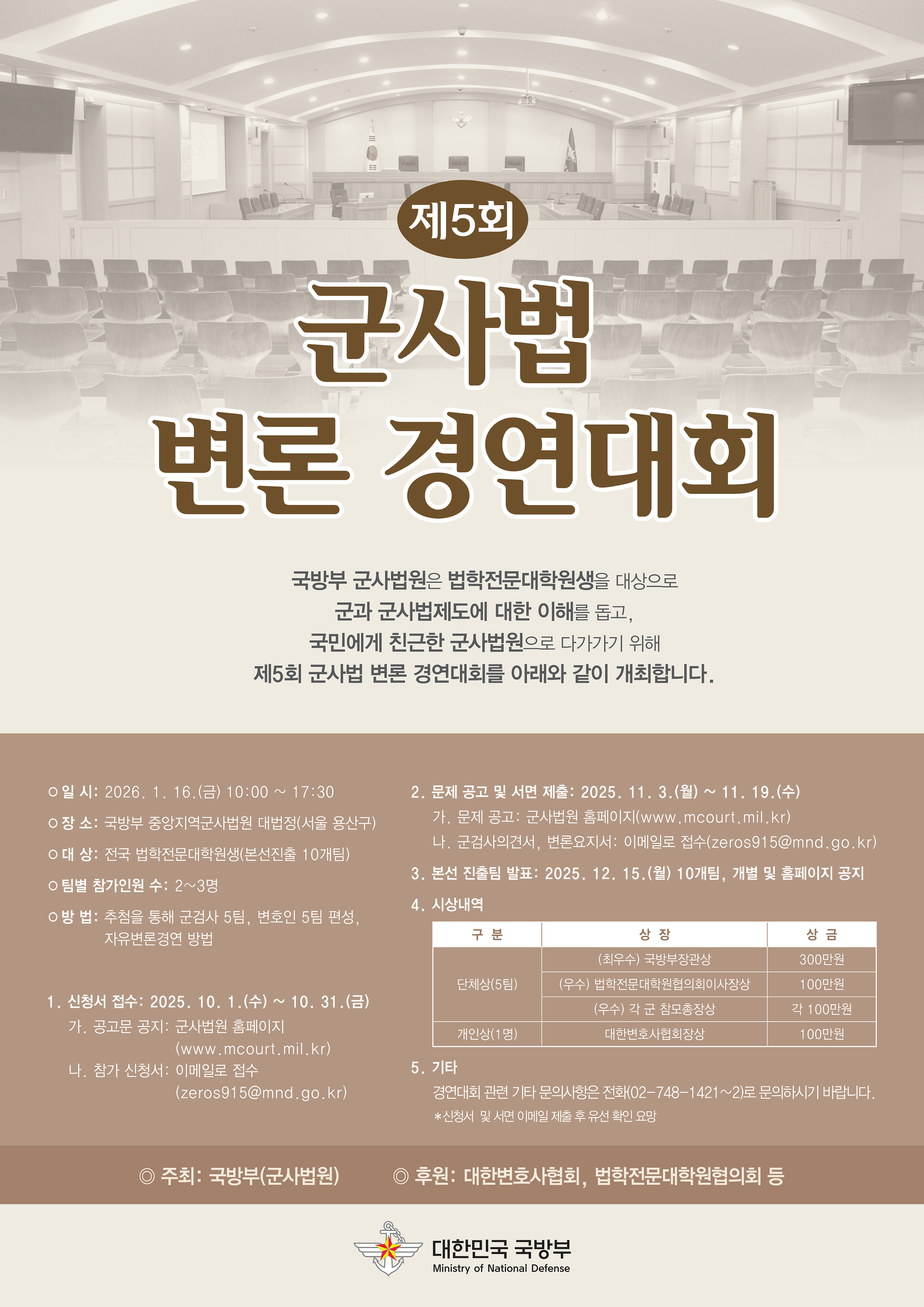 [행사] [국방부] 제5회 군사법 변론 경연대회 개최 안내