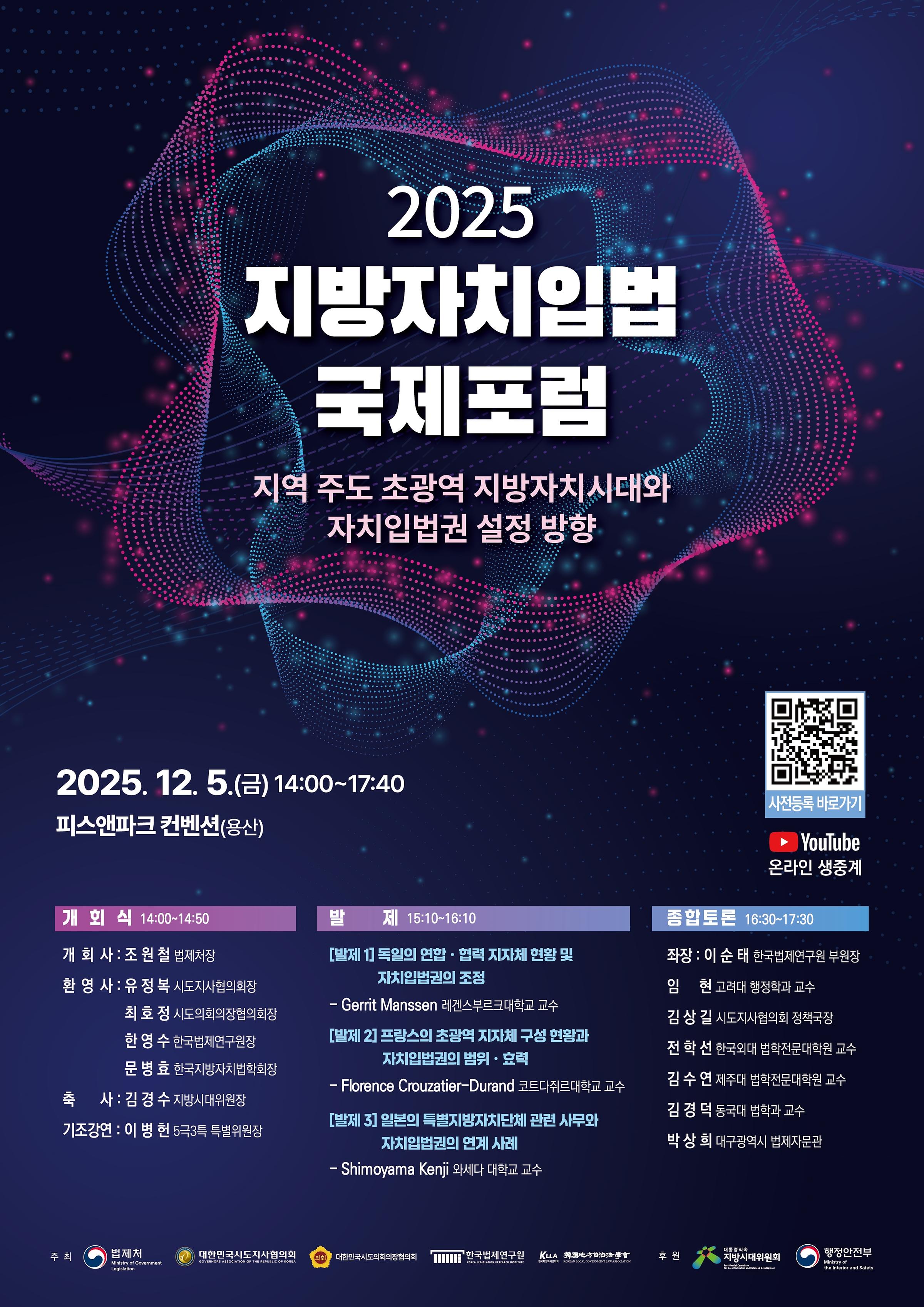 [학술] [법제처] 2025 지방자치입법 국제포럼 개최(온라인 동시송출) 안내