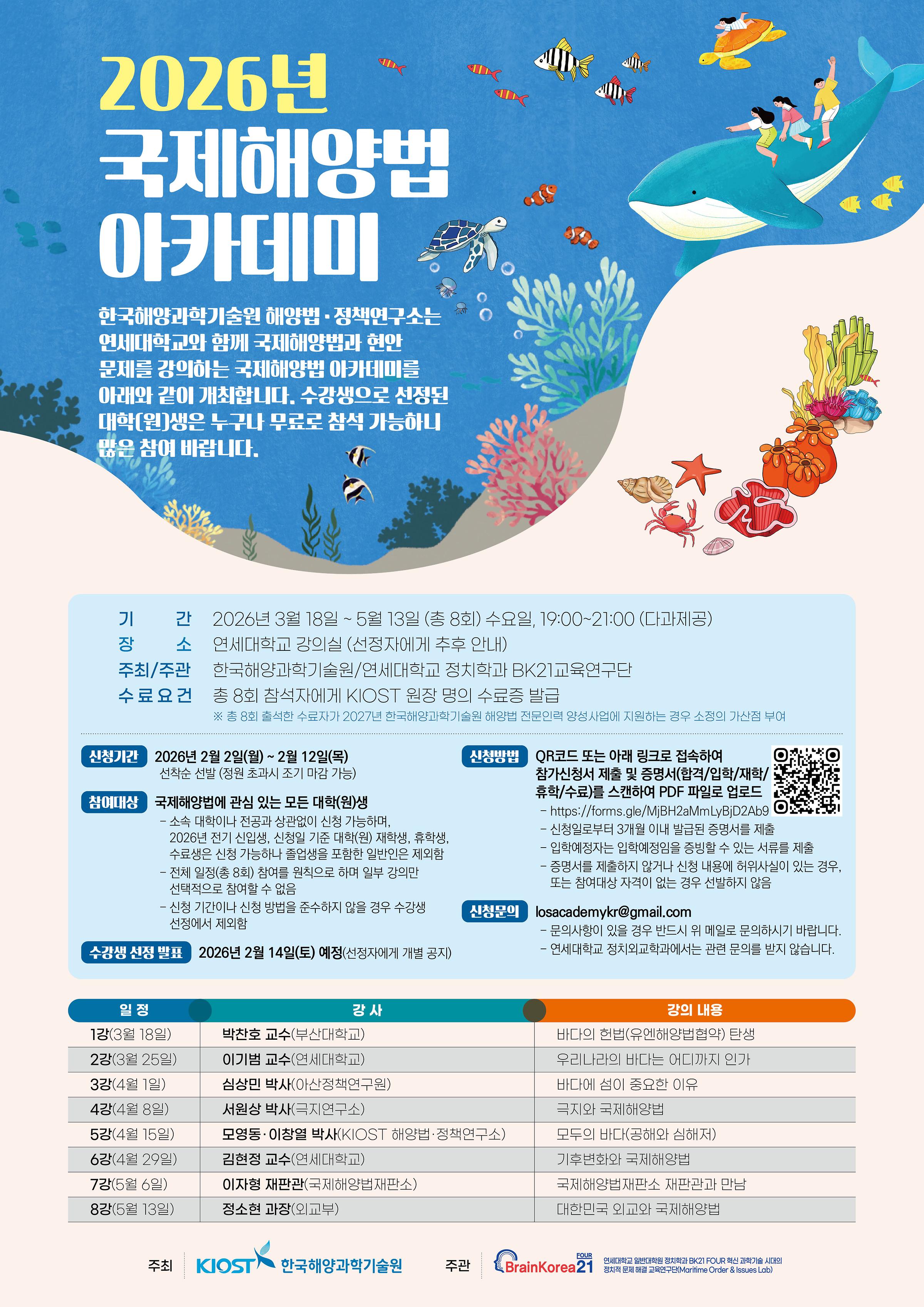 [한국해양과학기술원] 2026년 국제해양법 아카데미 공고