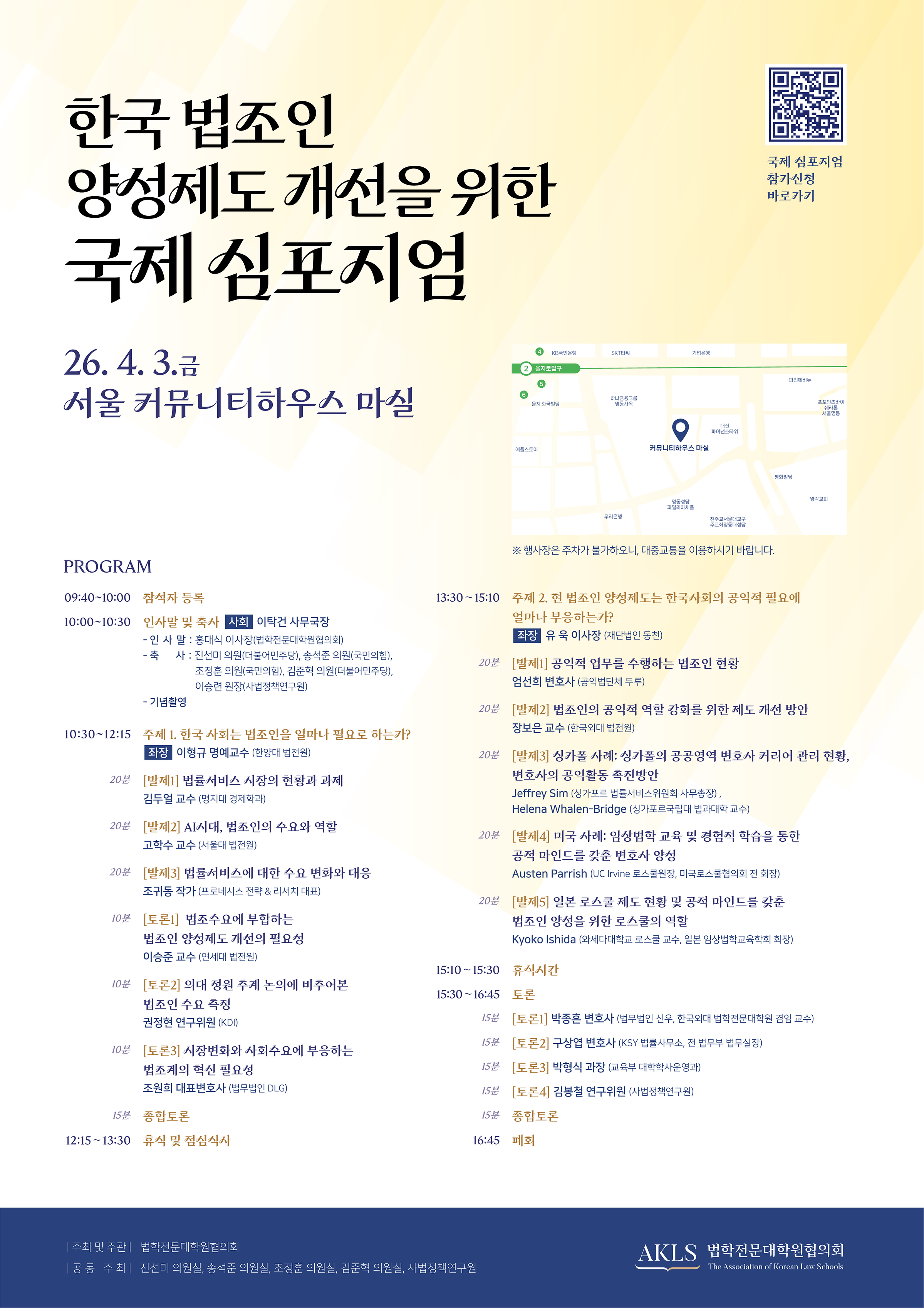 [학술] [법학전문대학원협의회] 한국 법조인 양성 제도 개선을 위한 국제 심포지엄 개최