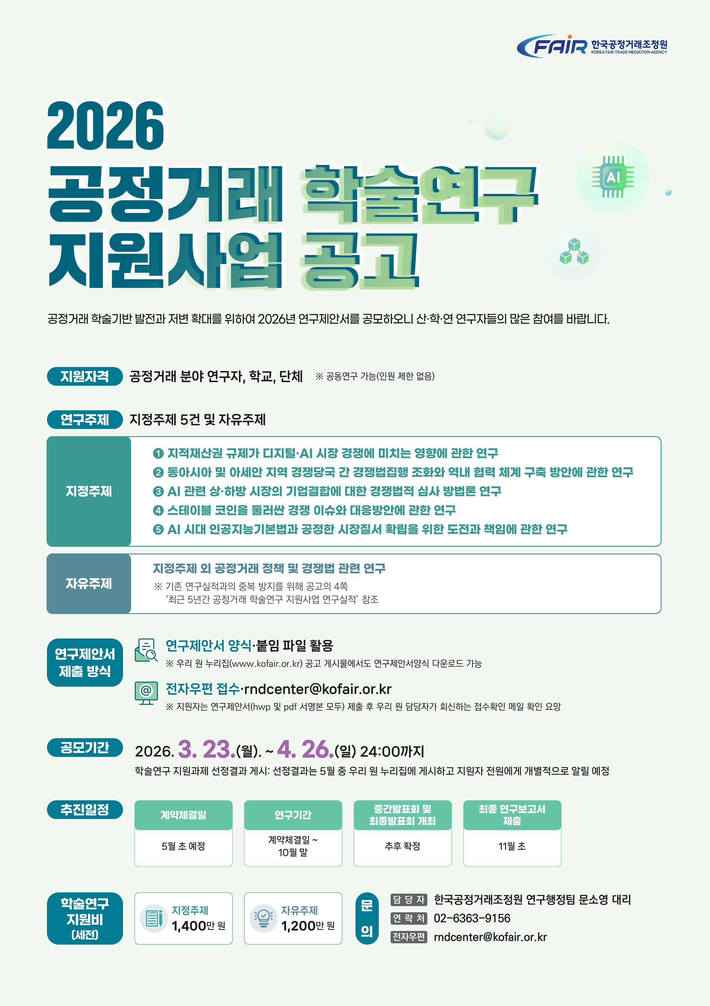 [한국공정거래조정원]2026년 공정거래 학술연구 지원사업 공고