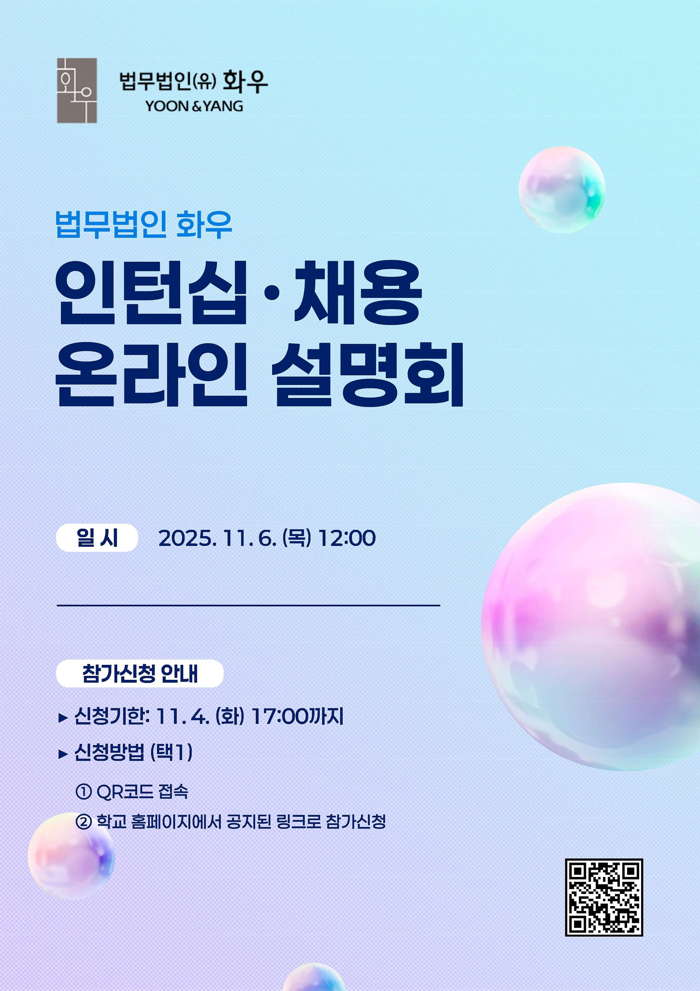 [법무법인(유한) 화우] 온라인 인턴십 및 채용 설명회 안내