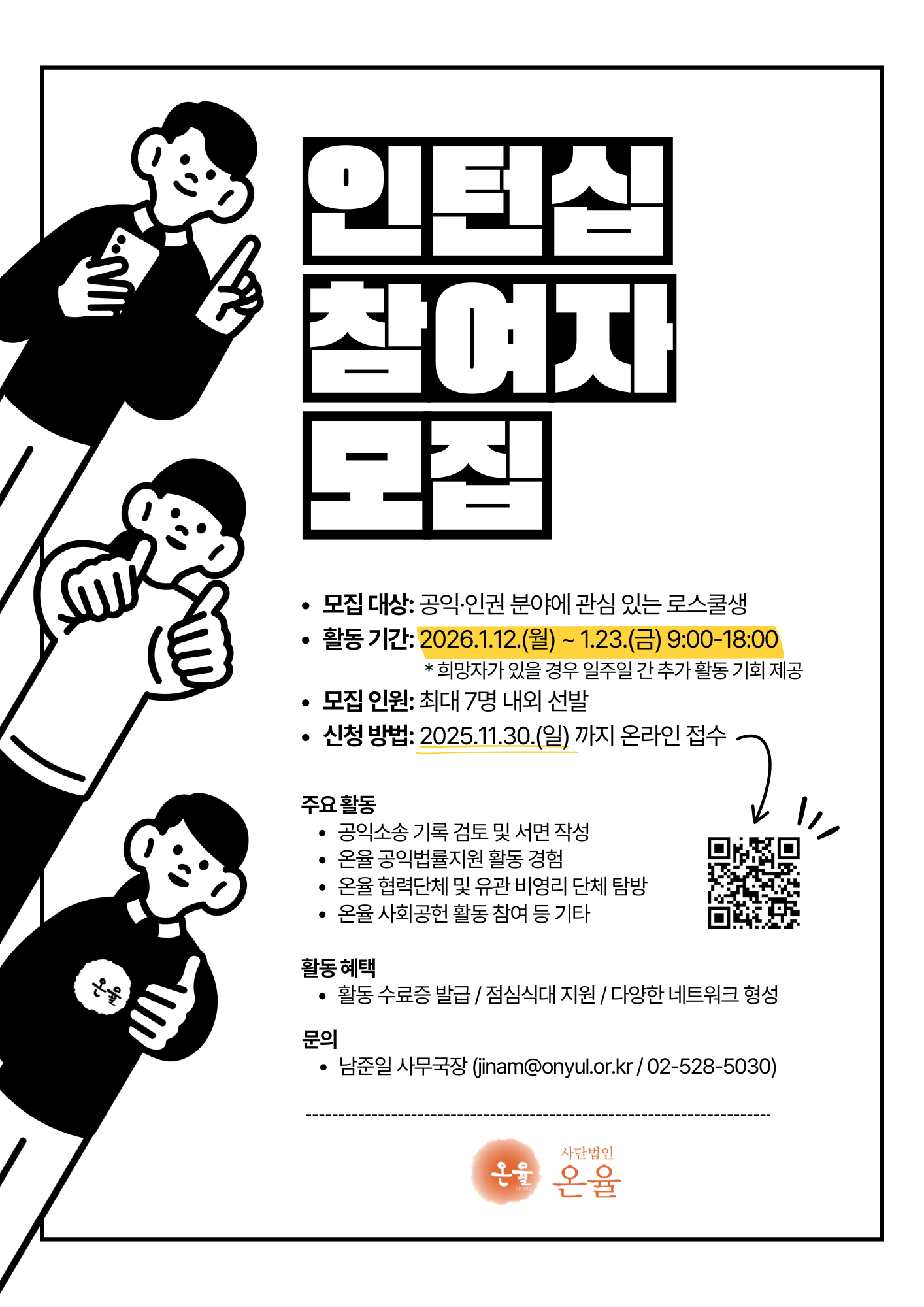 [사단법인 온율] 2025 동계 로스쿨 인턴십 참여자 모집