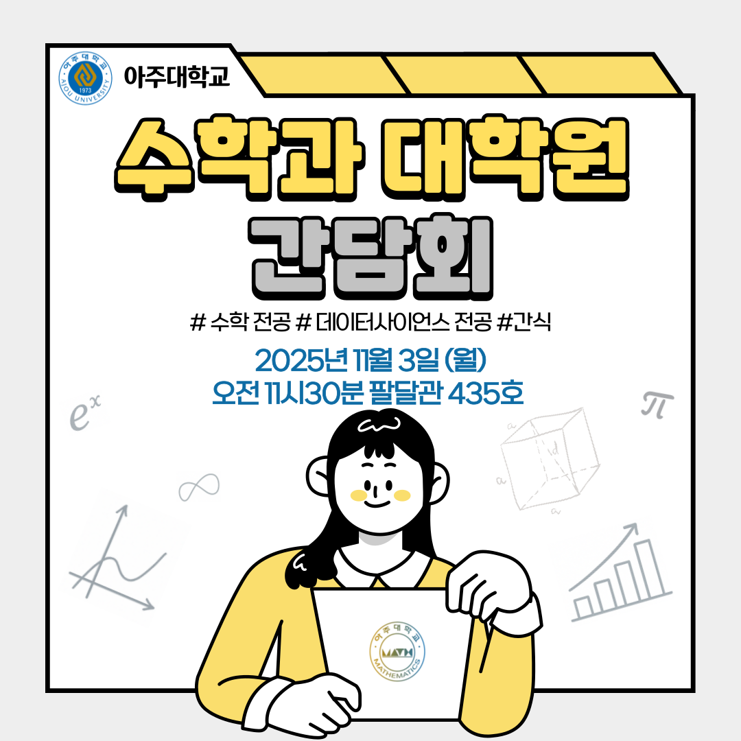 [학사] (시간변경)2026학년도 전기 일반대학원 수학과 간담회[2025.11.03.(월) 11:30]