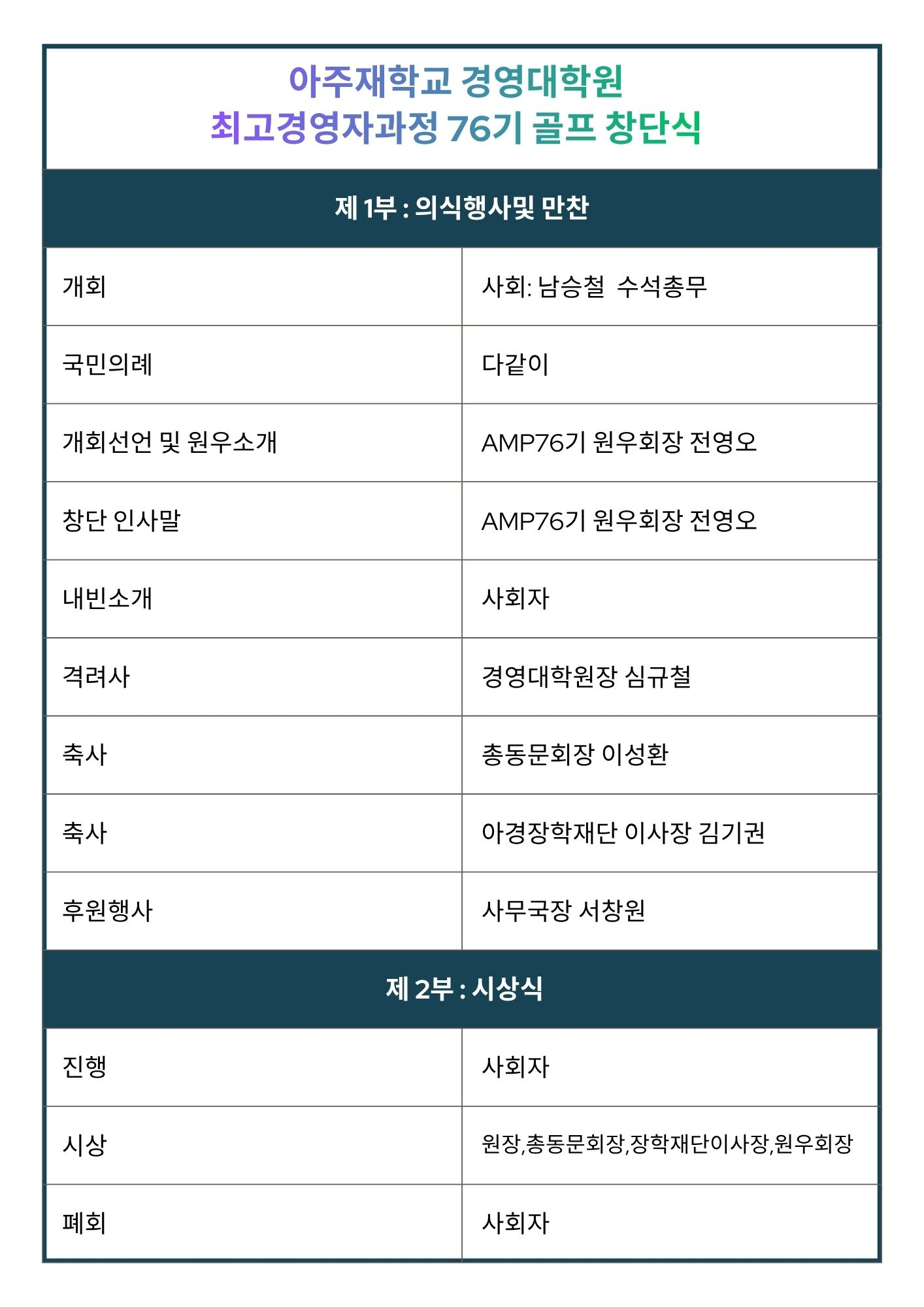 아주대학교 경영대학원 최고경영자과정 76기(회장 전영오)