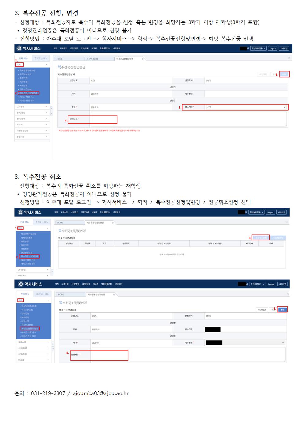 [학적] 2025-2학기 전공 신청·변경, 복수전공 신청·변경·취소 안내(11.3~11.10)
