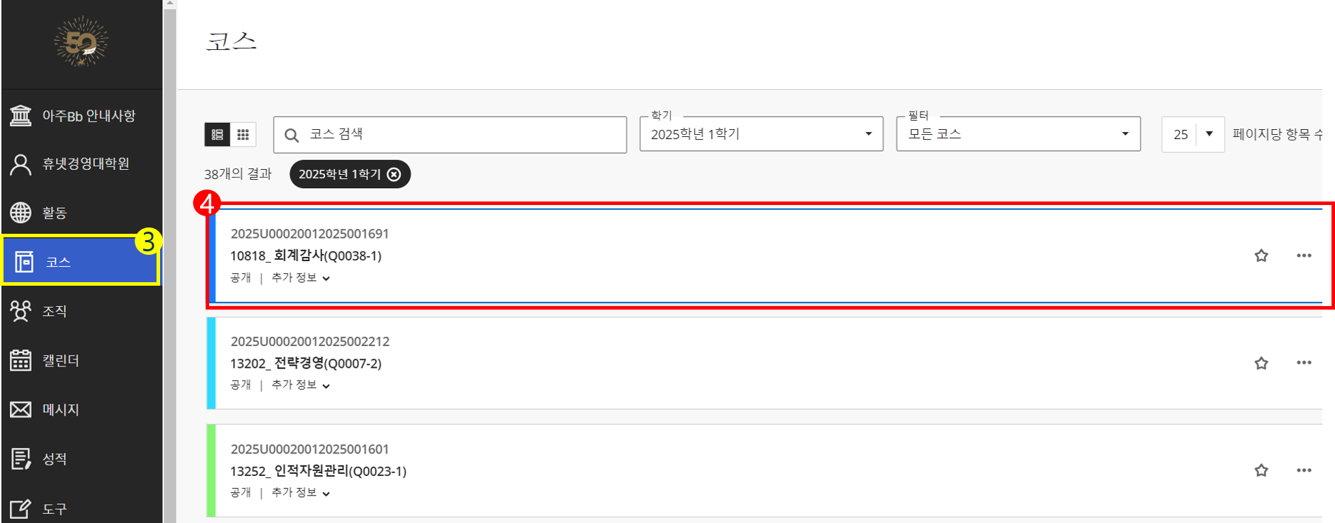 - 수강방법: 아주대학교 포탈 로그인-아주Bb-코스-과목명-온라인 강의실