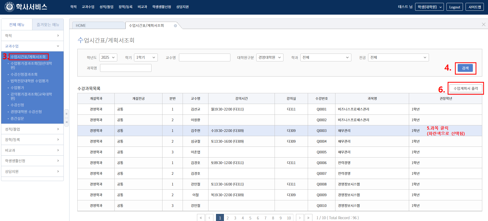 3. 강의계획서 조회 및 강의실 조회방법