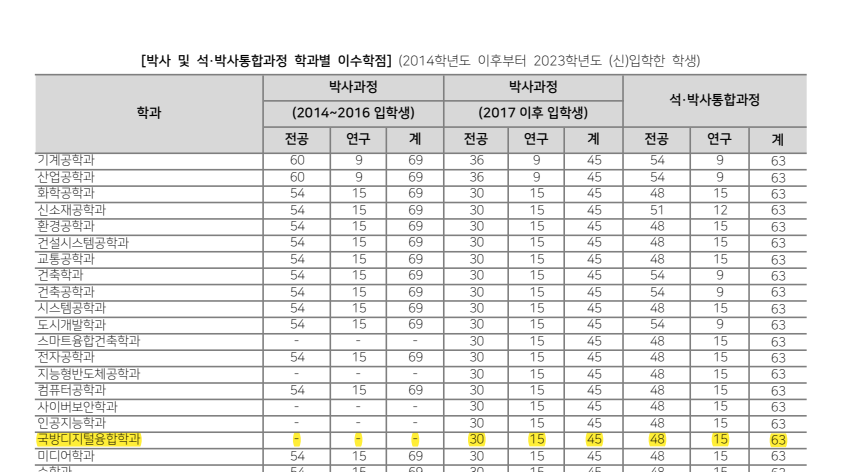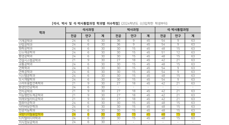 3. 일반대학원 학과별 박사과정 및 석박사통합과정 이수학점(2025요람발췌) 1부. 끝.