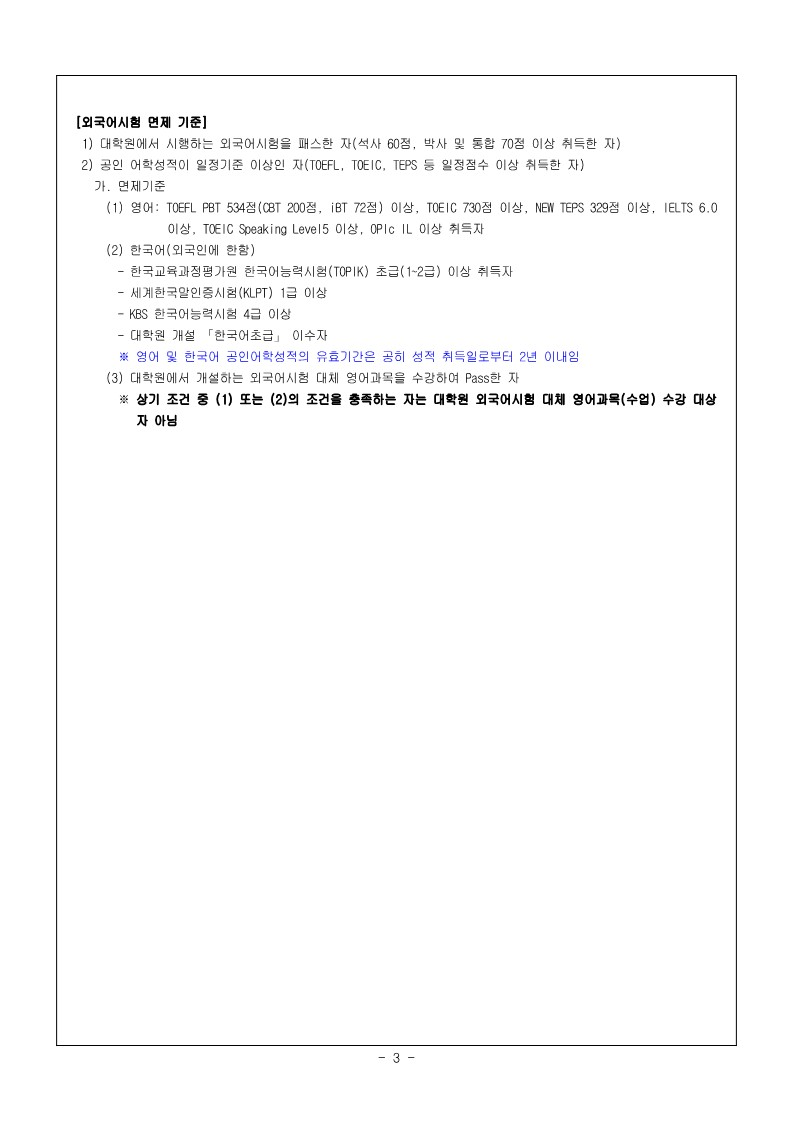 - 시험 면제 외국어 성적 제출 (2026년 3월 한달간 면제신청 접수예정)