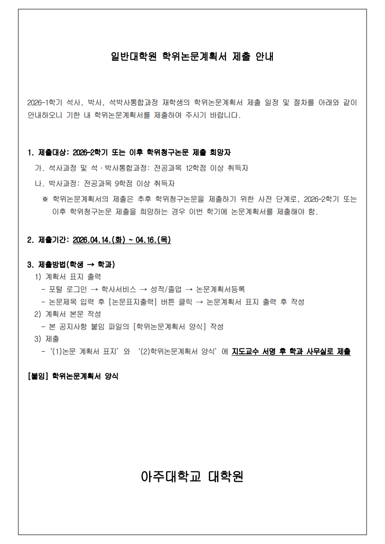 [공지] 학위논문계획서 제출 안내 (2026-1학기)