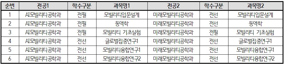 - 교과목명: 인턴십4~6(전자) → 인턴십4~6(모빌리티)