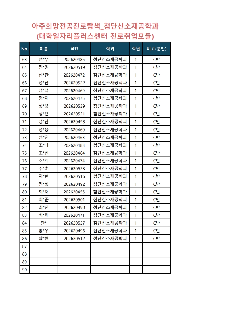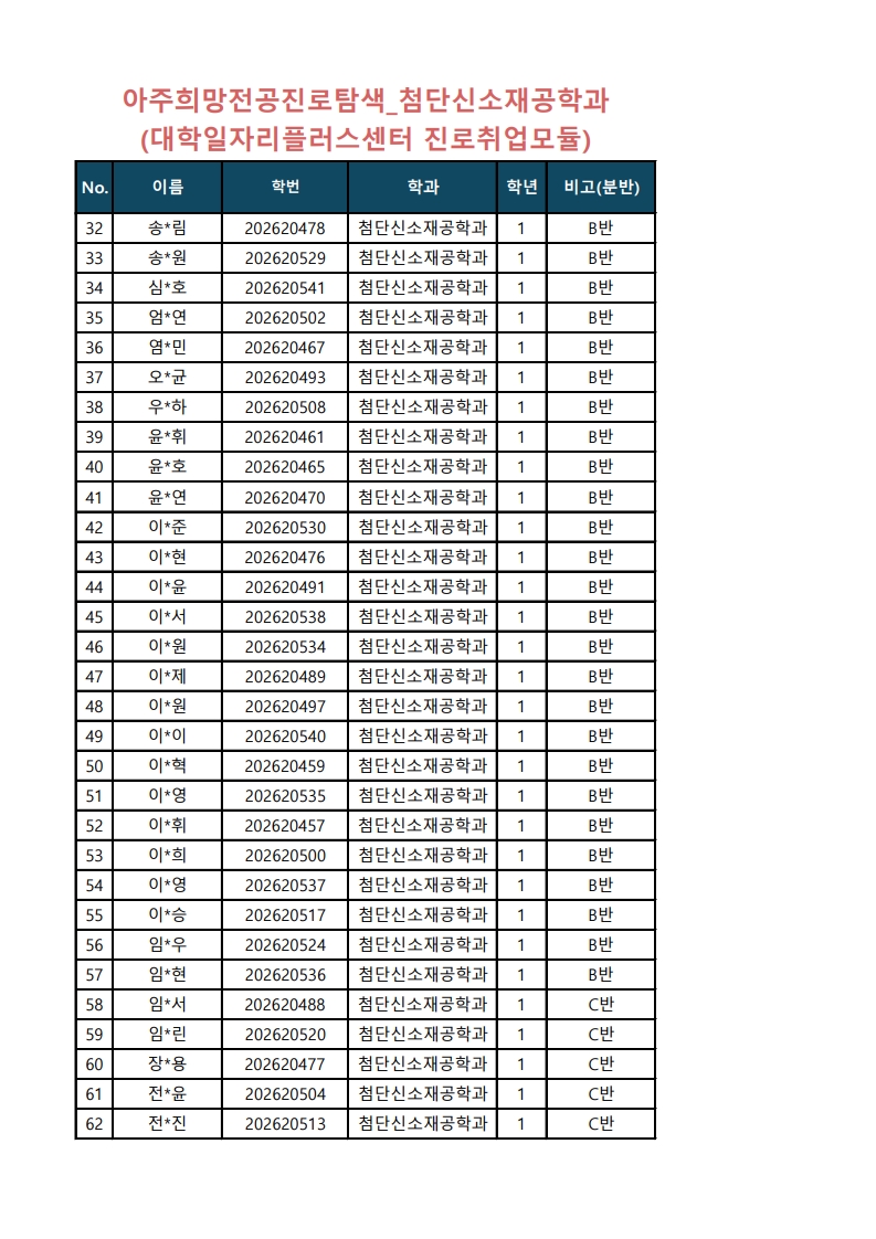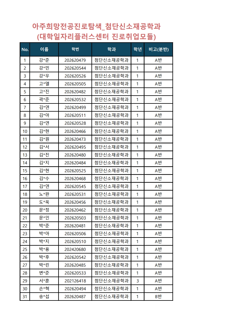[학사] 아주희망 분반 수정사항 안내