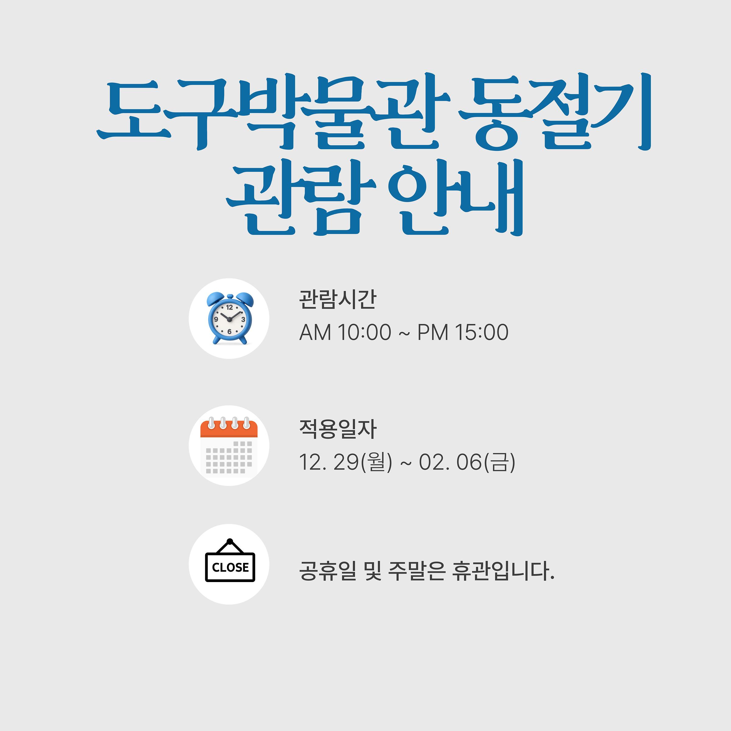 12월 29일부터 2월 6일까지 도구박물관 관람 시간이 조정됩니다.