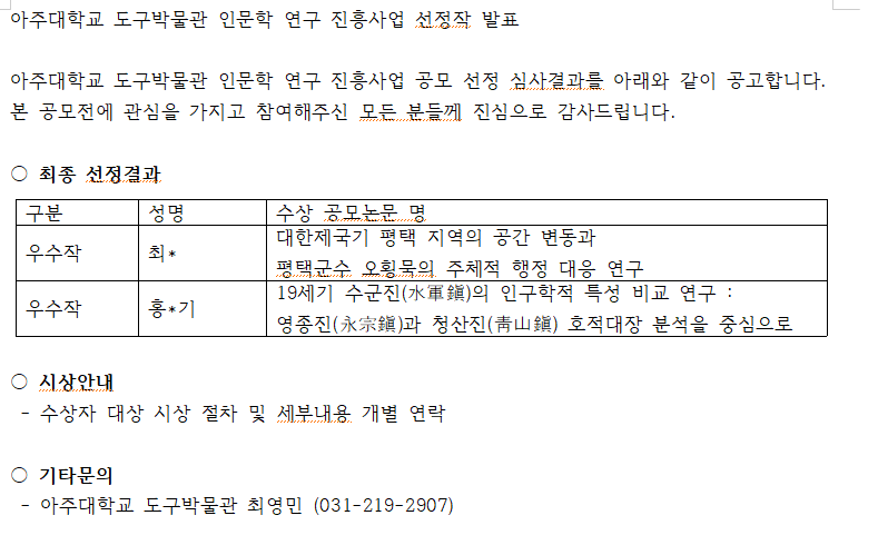 아주대학교 도구박물관 인문학 연구 진흥사업 선정작 발표
