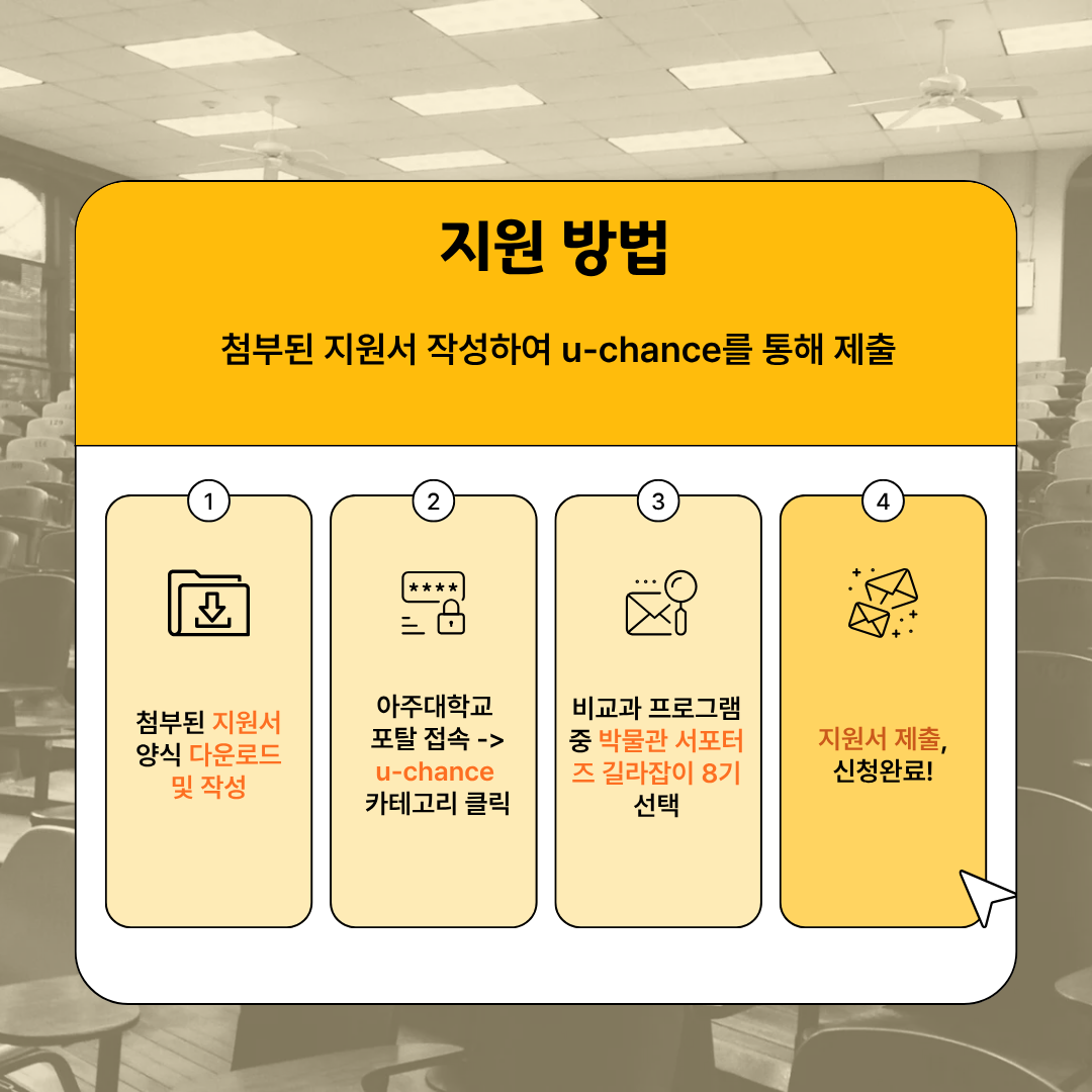 ! 아주대학교 포탈 - U-Chance 접속으로 신청 부탁드립니다 !