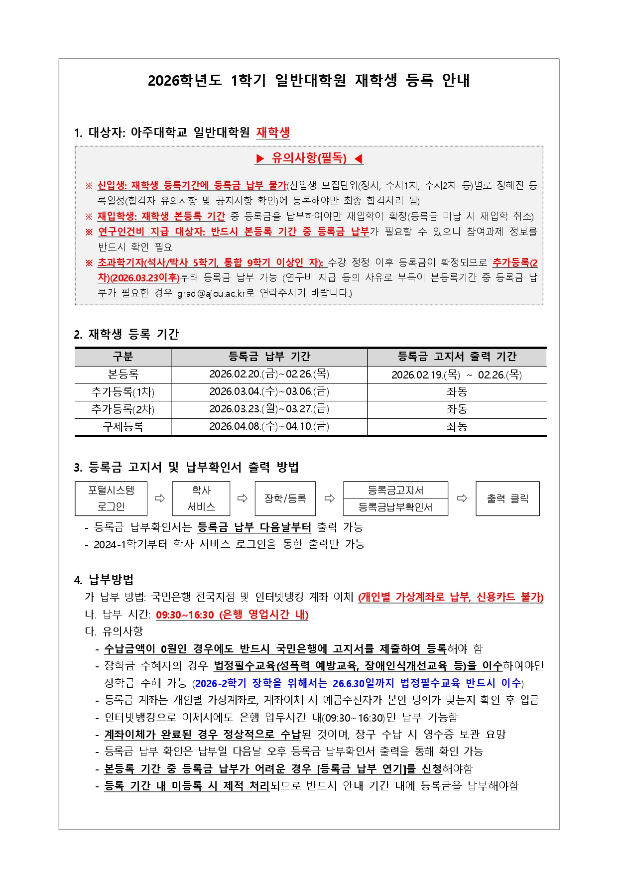 [기타] [자연대/대학원] 2026-1학기 일반대학원 재학생 등록 안내