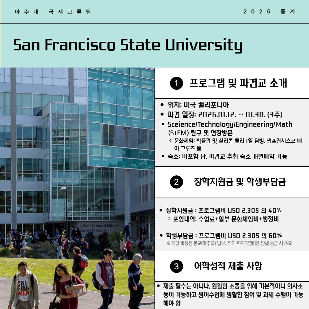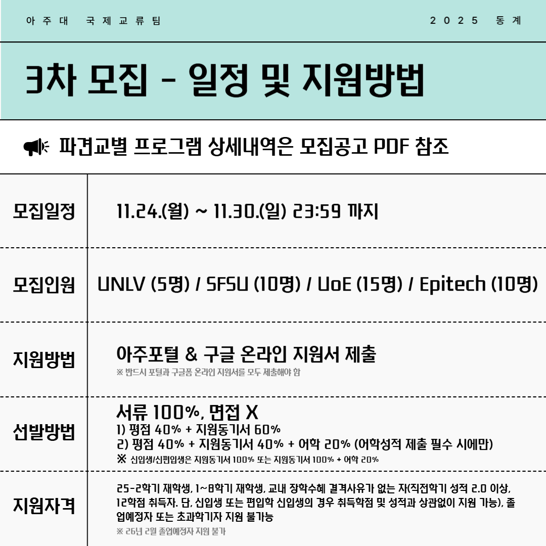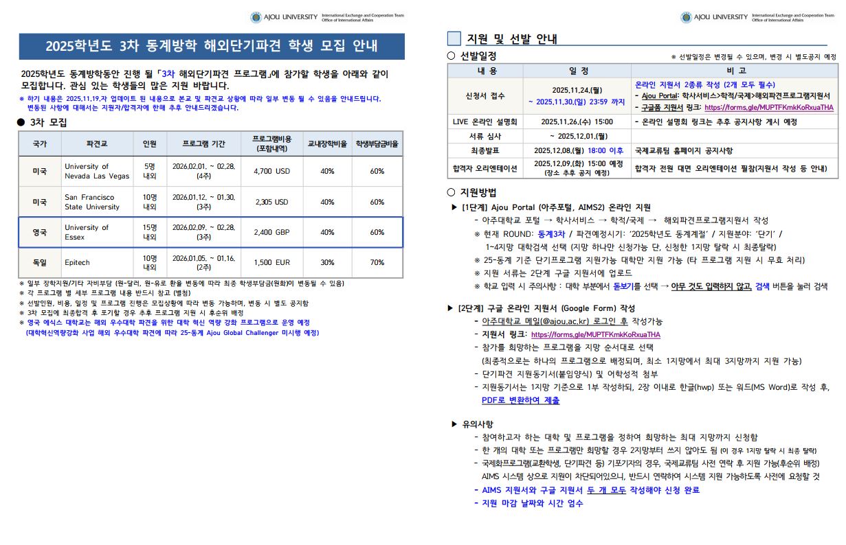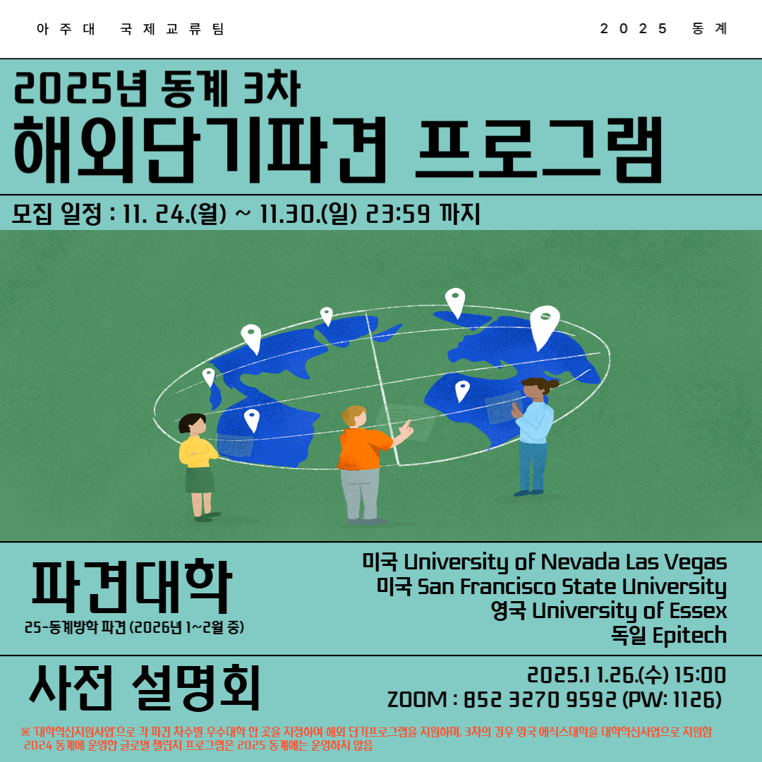 [공지] [국제교류팀] [동계 3차] 2025 해외단기파견 프로그램 참가자 모집 (11/24~11/30)