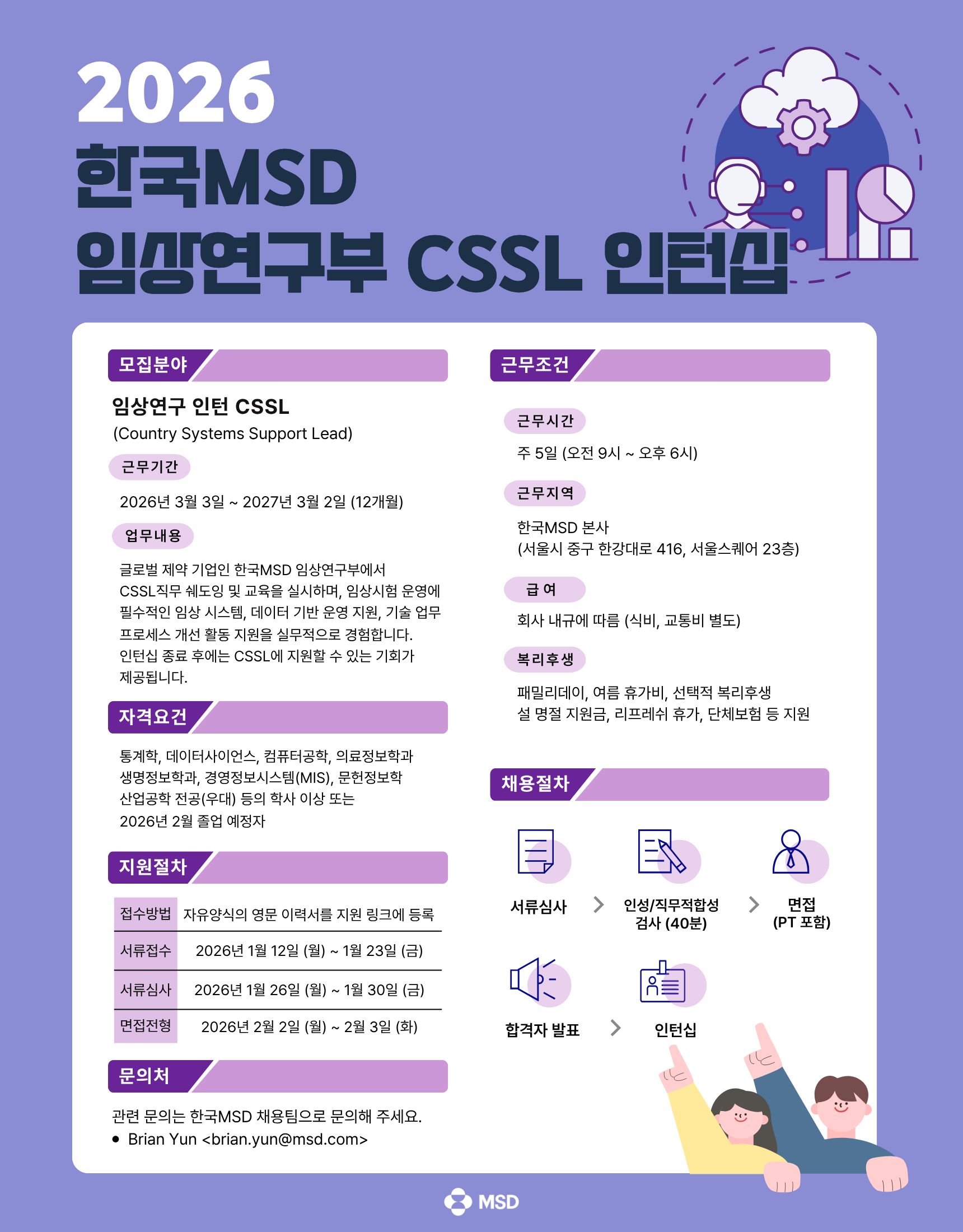 [취업] 2026 한국 MSD 임상연구부 CSS 인턴 모집