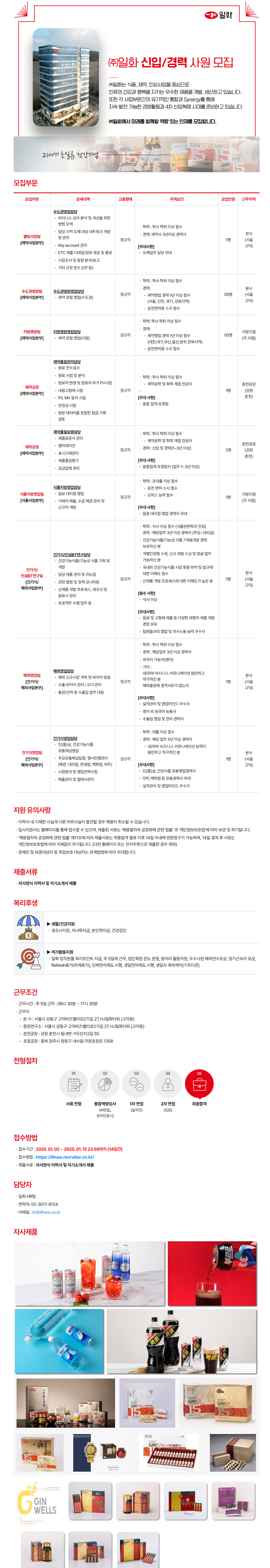 [취업] 2025년 (주)일화 신입 및 경력 모집