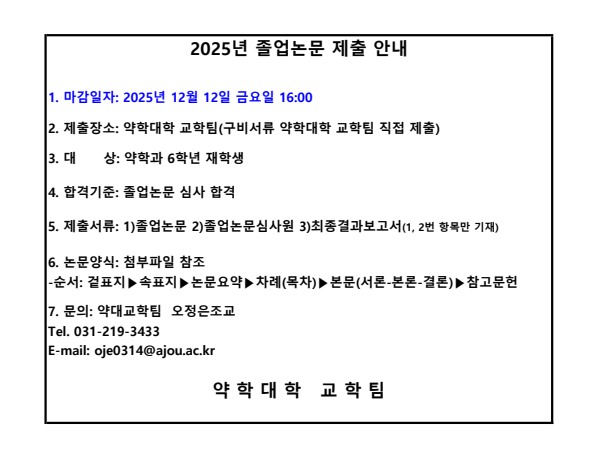 [Notice] [학부] 2025학년도 학부 졸업시험 및 졸업논문 제출 안내(졸업예정자 대상)