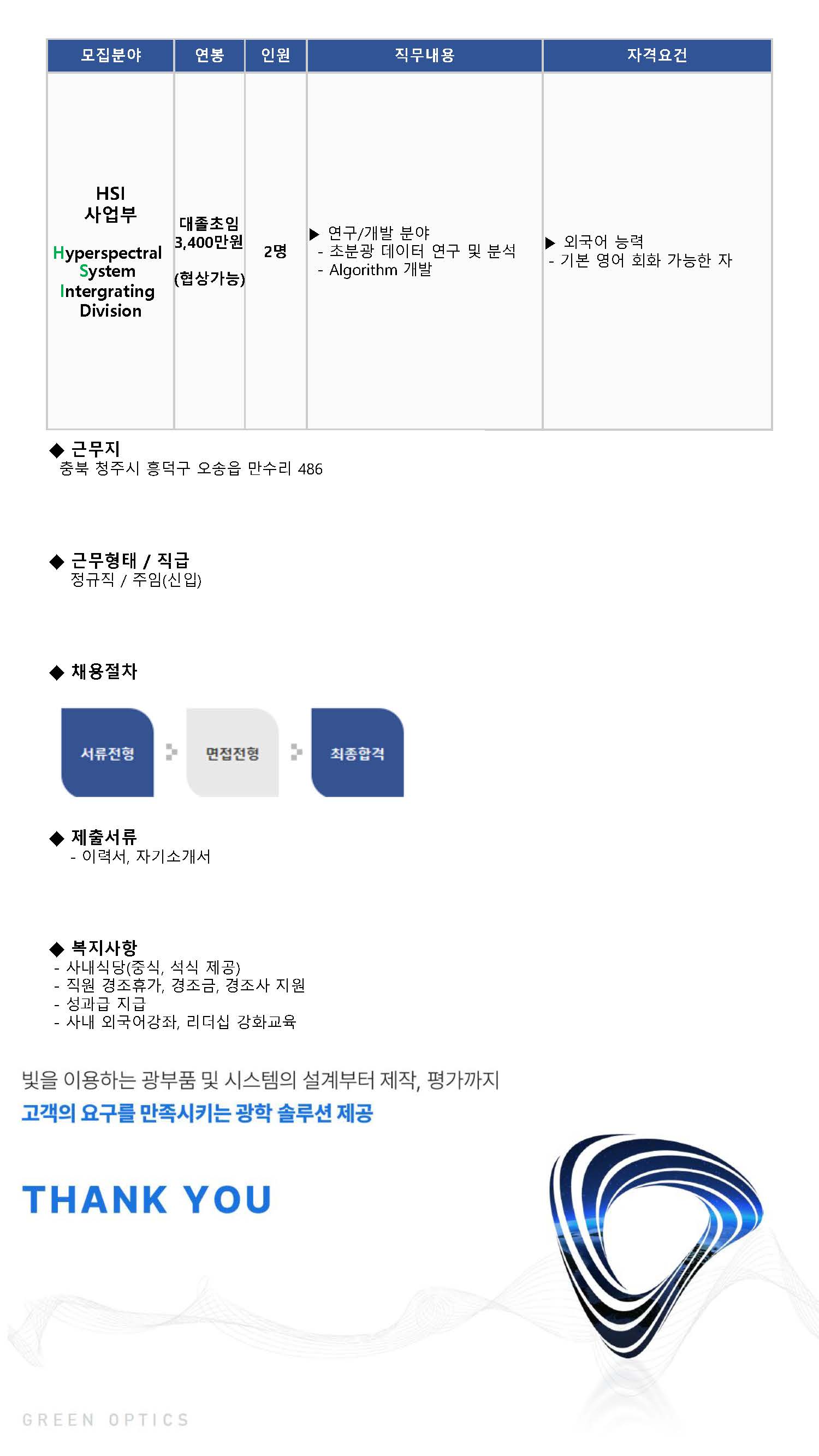 (주)그린광학 HSI사업부 채용 공고